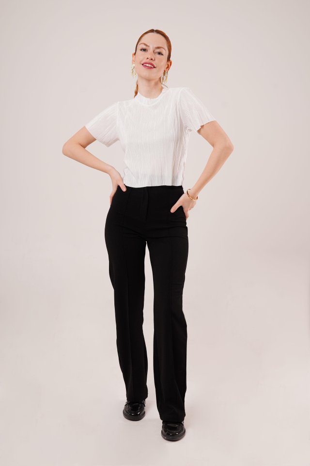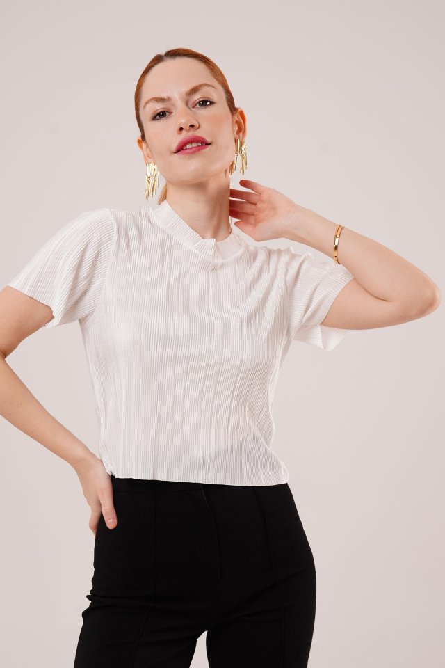 Fitilli Kısa Kollu Parlak Beyaz Bluz