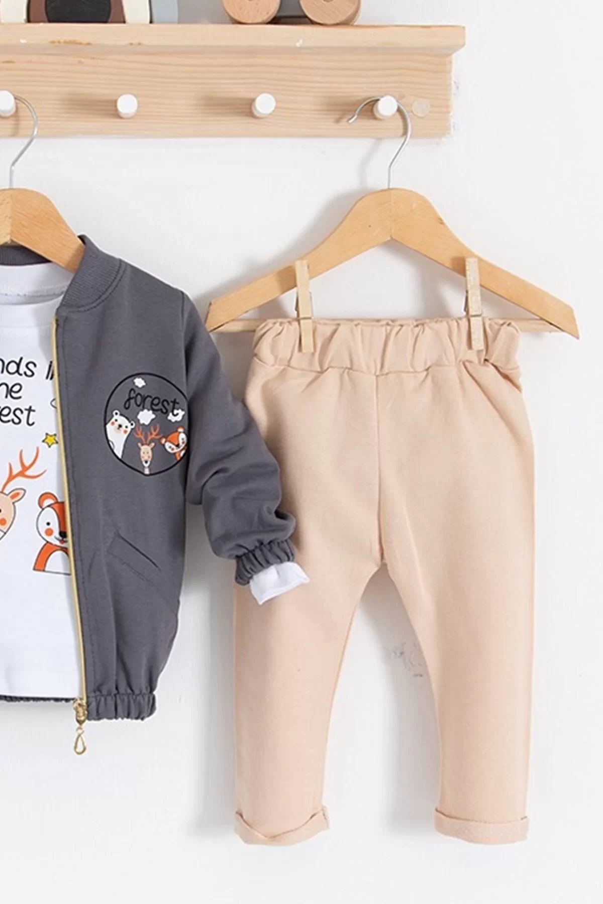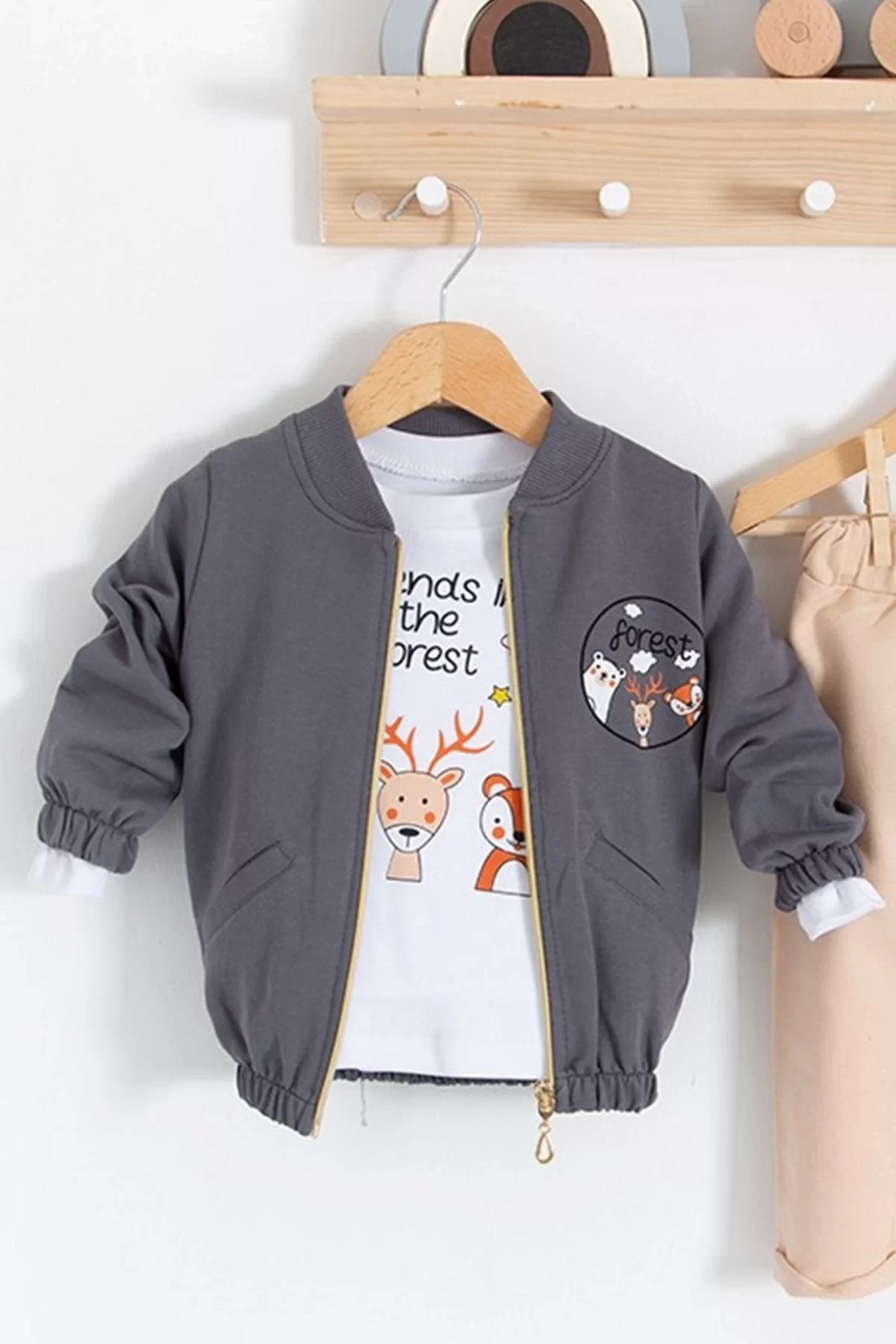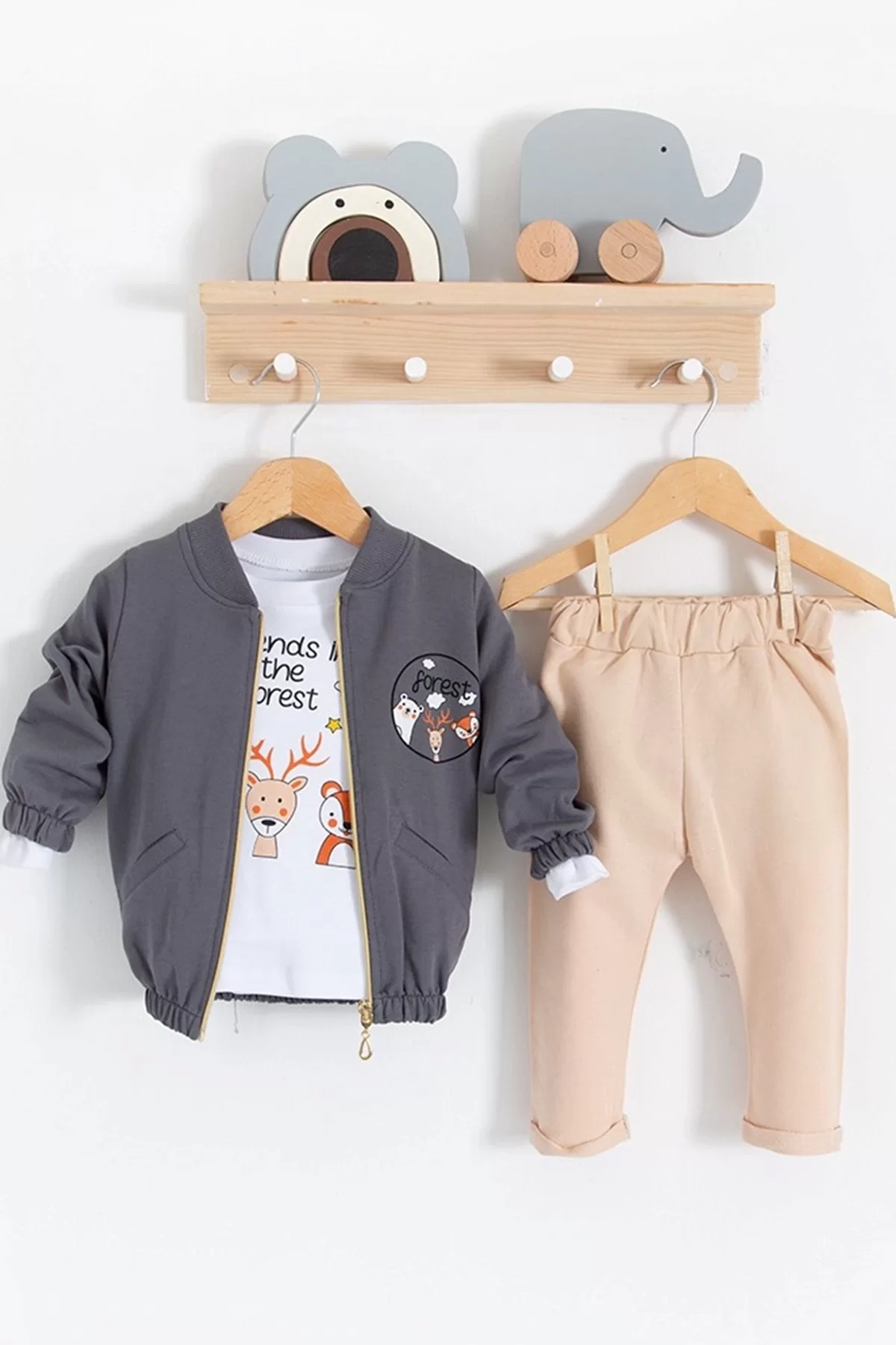 Forest Hırkalı 3’lü % 100 Pamuk Erkek Bebek Takımı