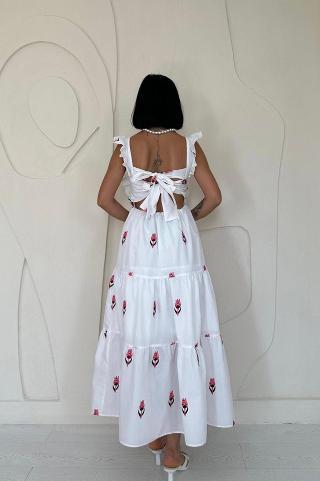 Fuşya Sıfır Kol Fırfırlı Elbise
