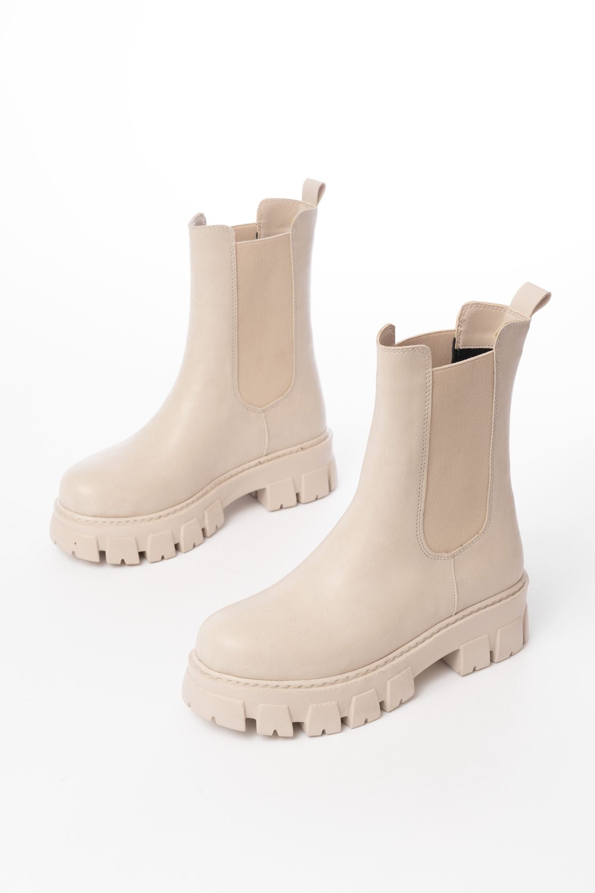 FZ-299 Bej Yüksek Tabanlı Lastikli Günlük Kadın Bot