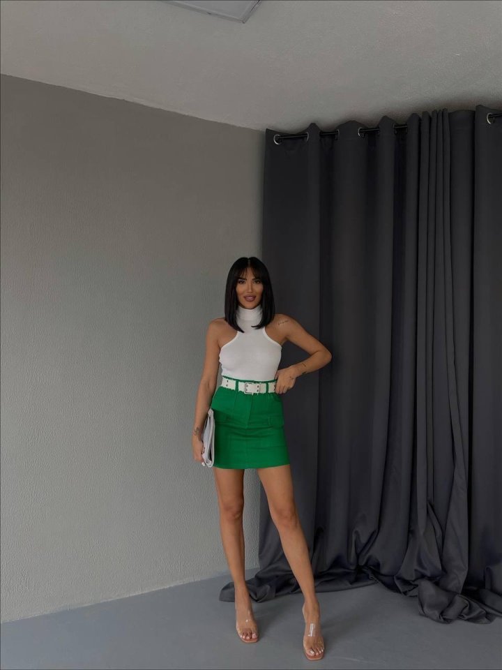 GABARDİN KISA ETEK CEP DETAYLI – Yeşil