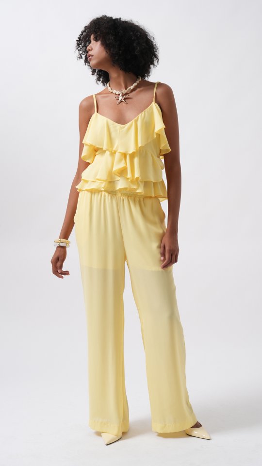 Geniş Paça Astarlı Tül Pantolon