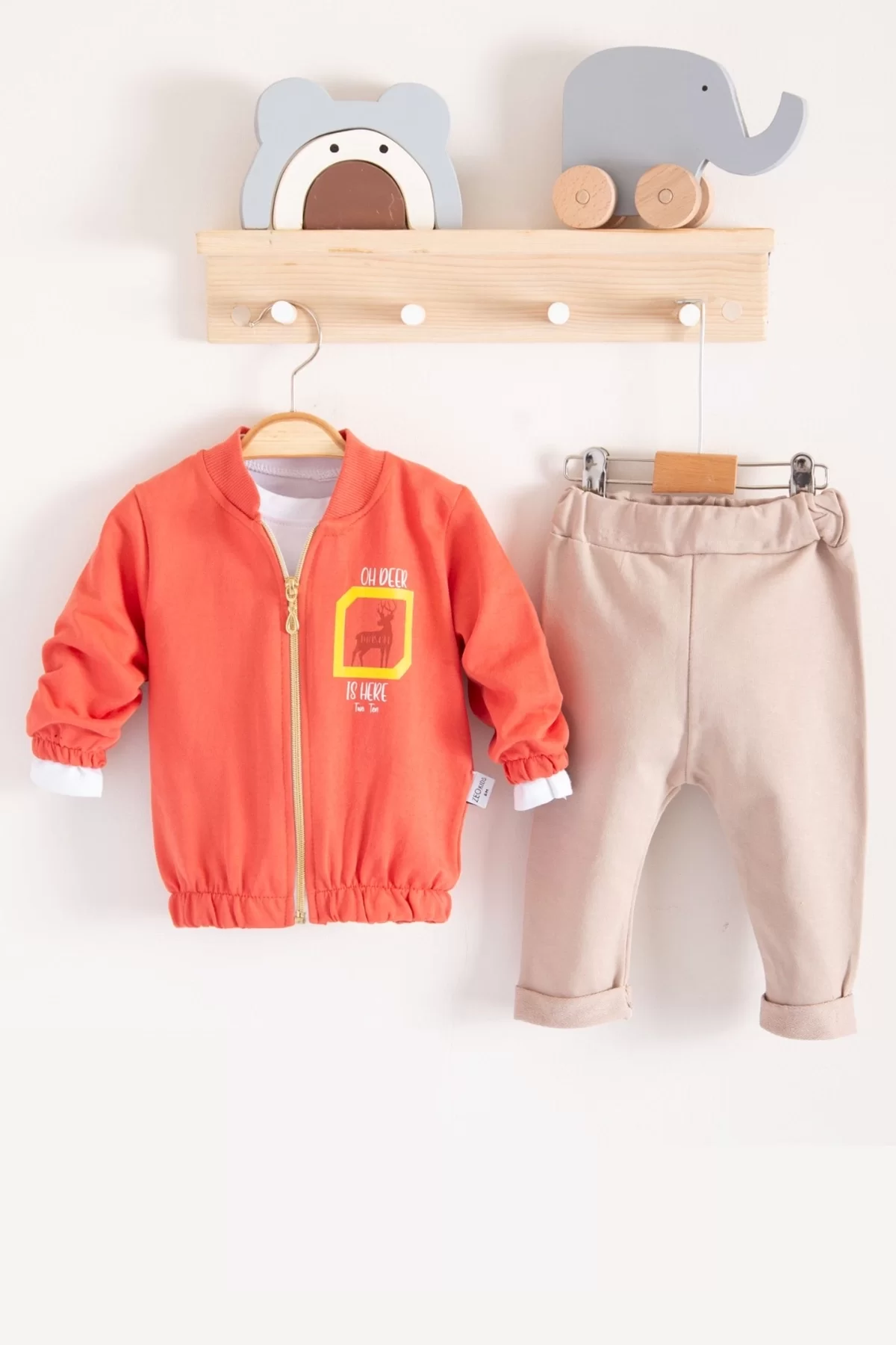 Geyik Desenli Hırkalı 3’lü Erkek Bebek Takım.