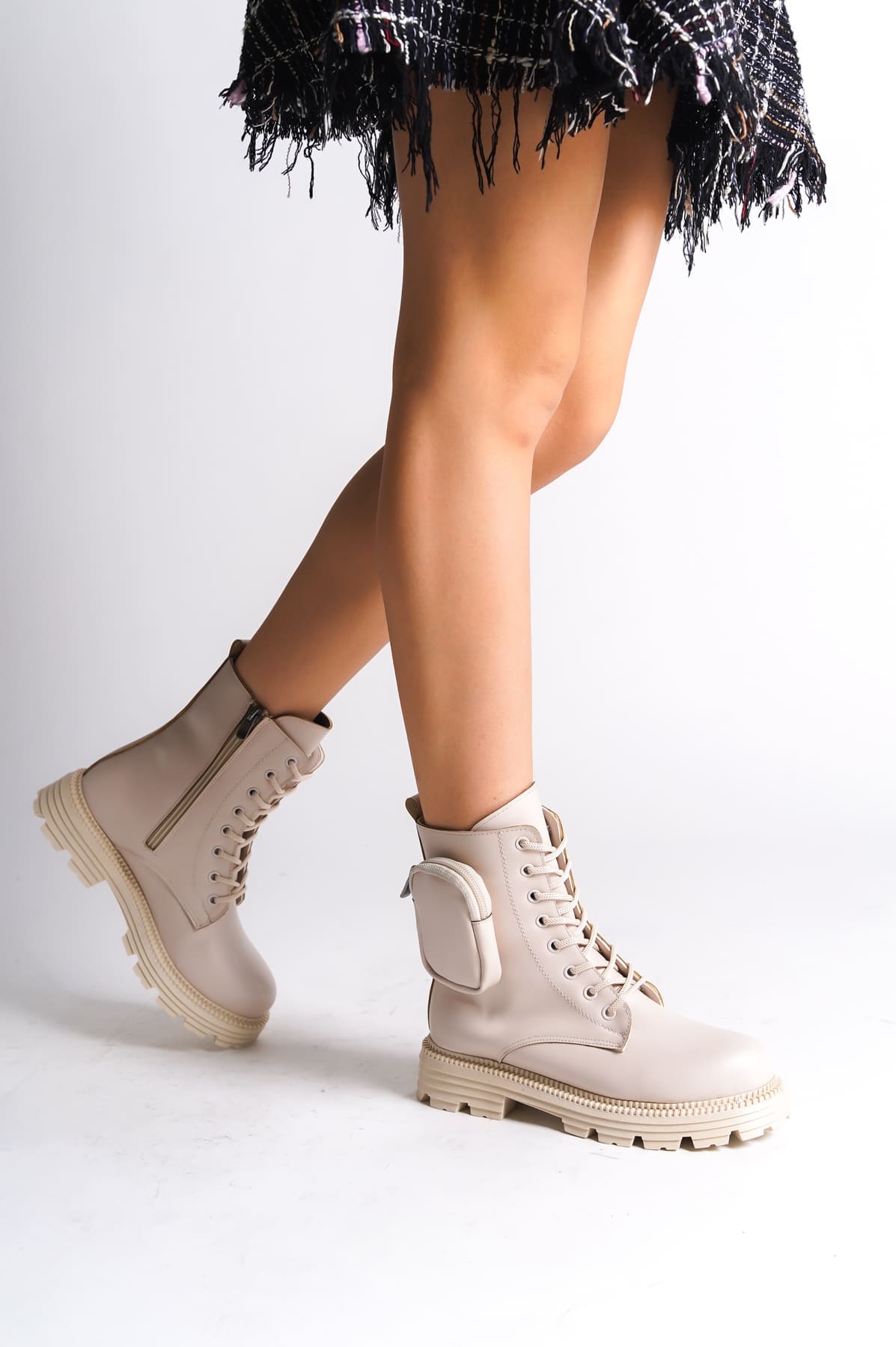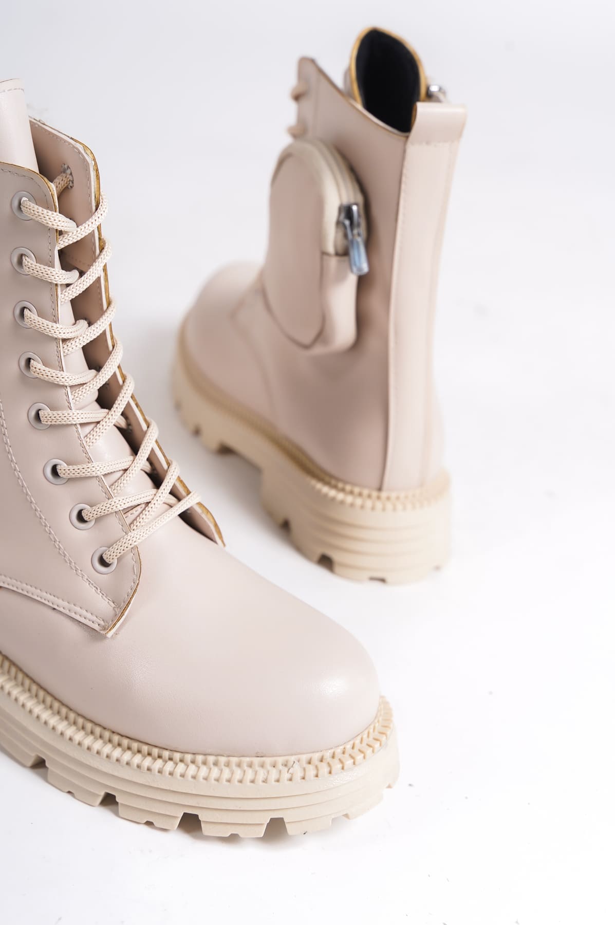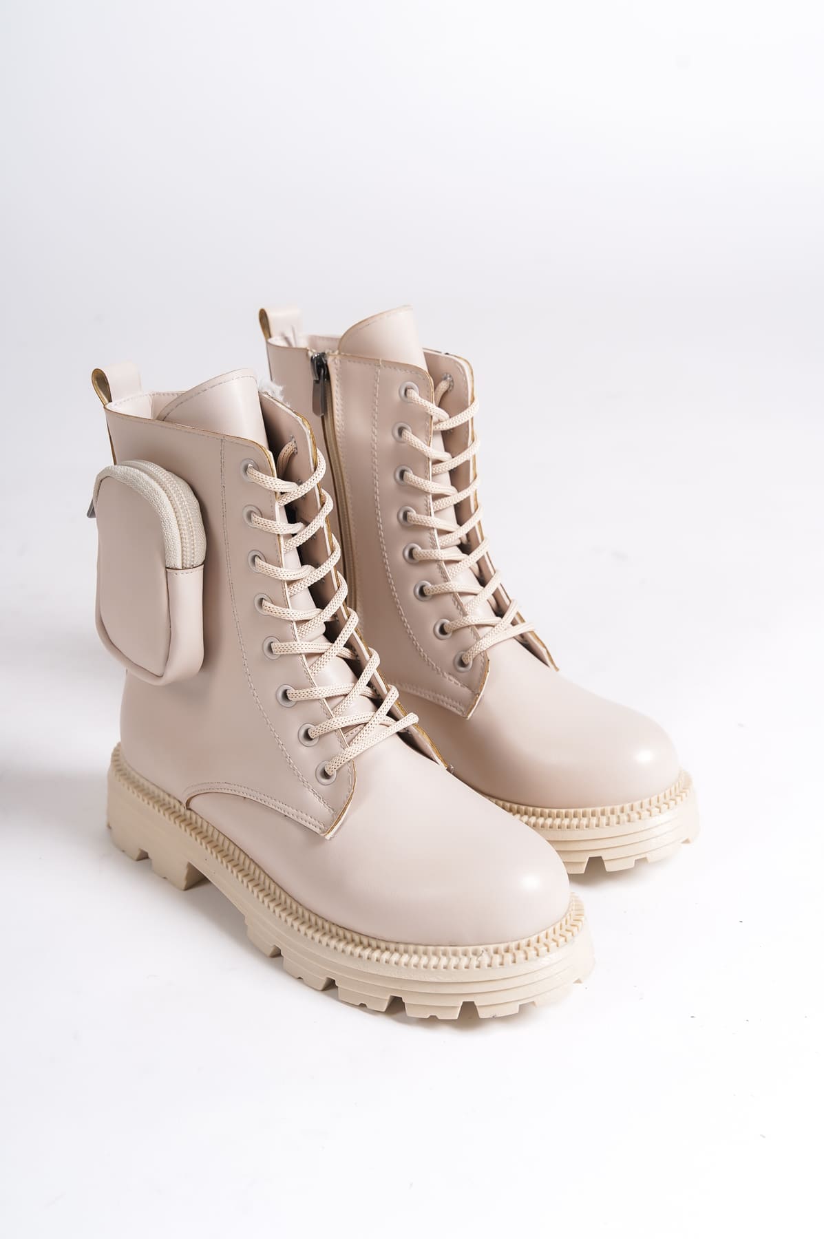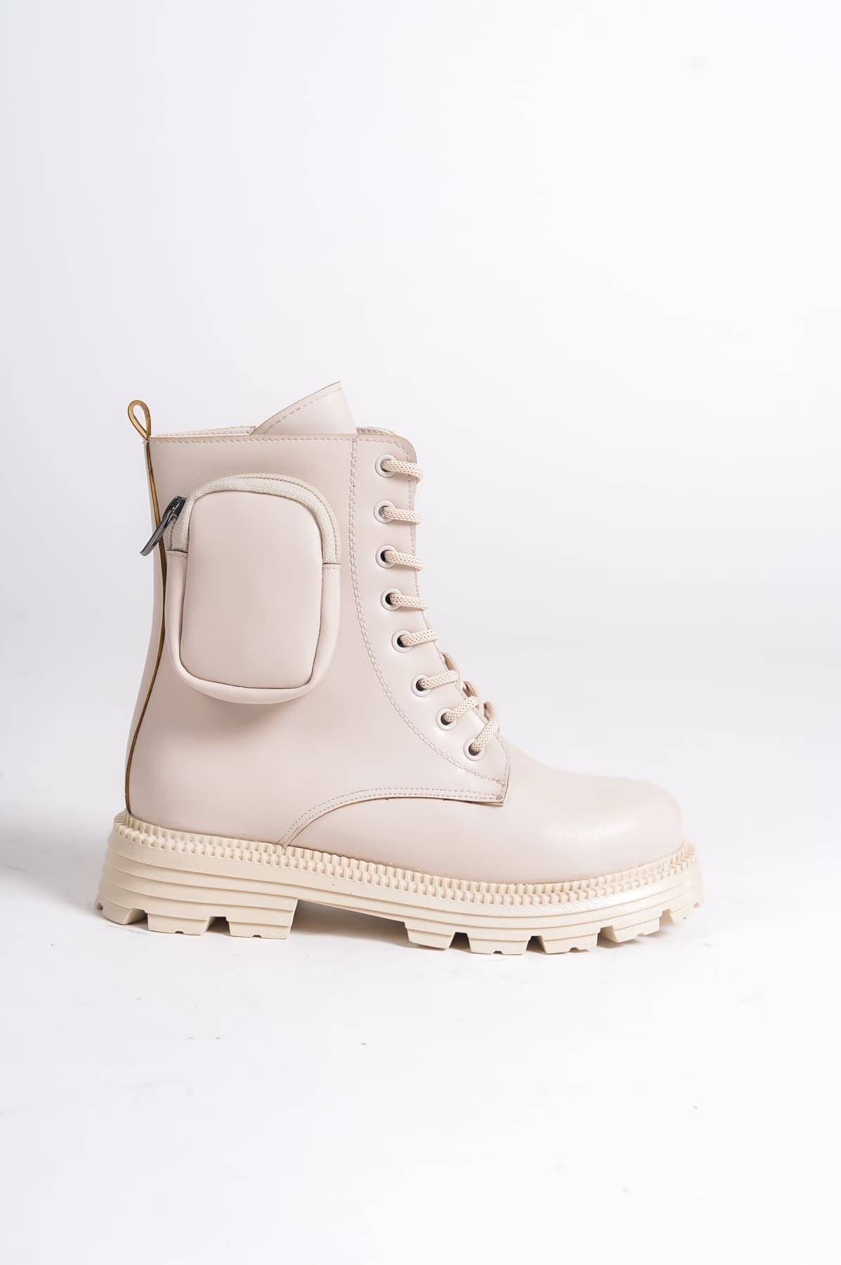GINA Bağcıklı Fermuarlı Ortopedik Taban Çantalı Kadın Bot CKT – Krem