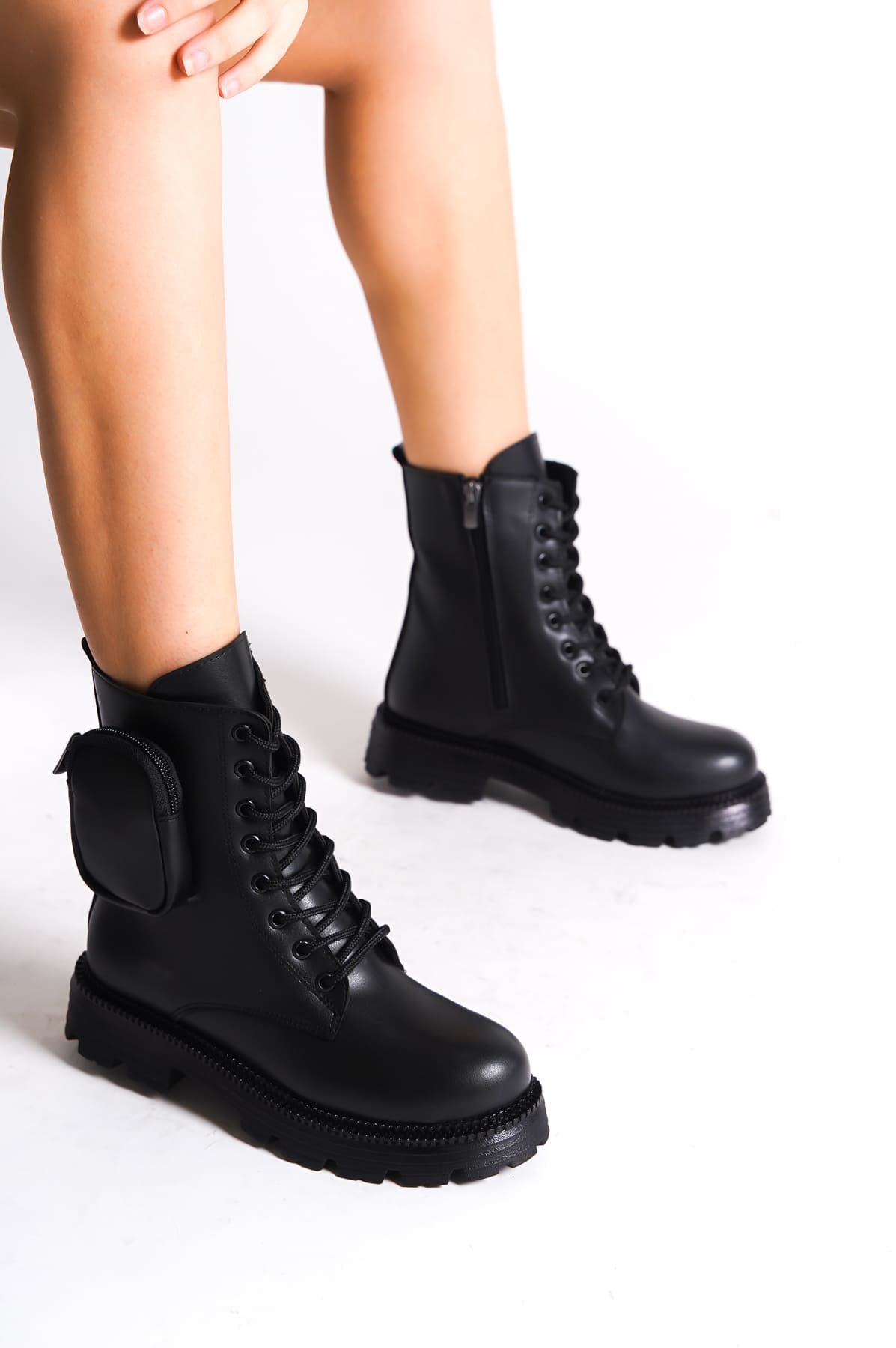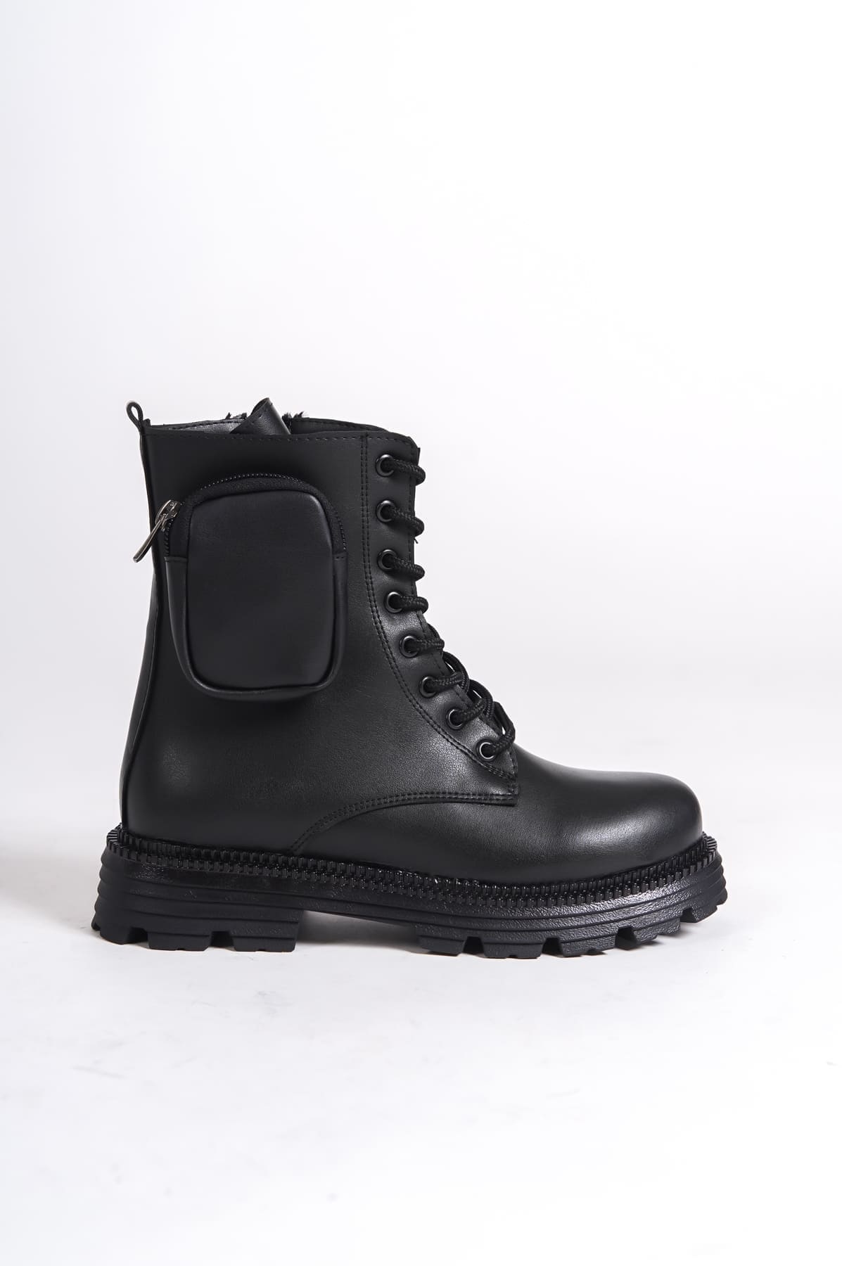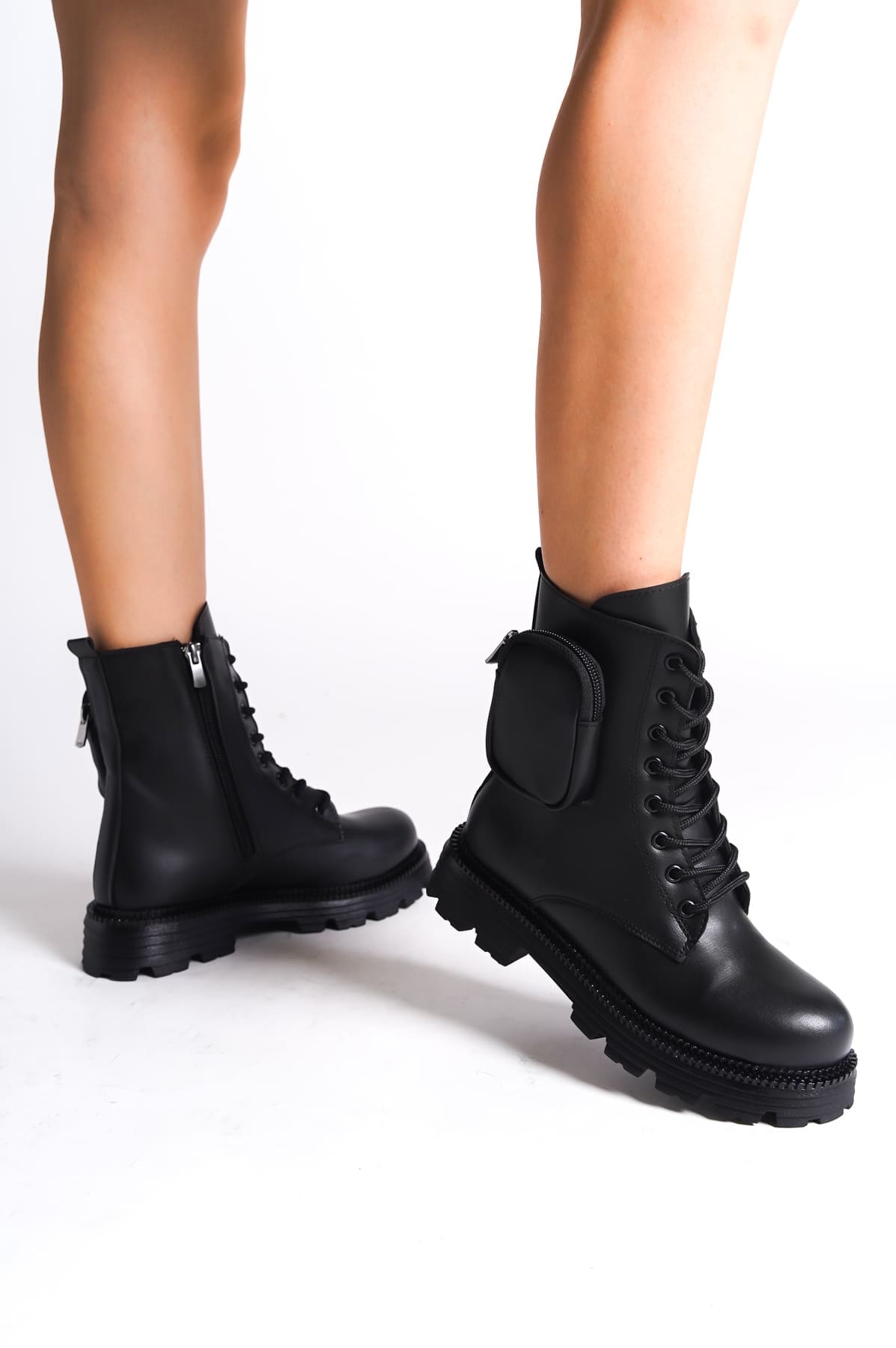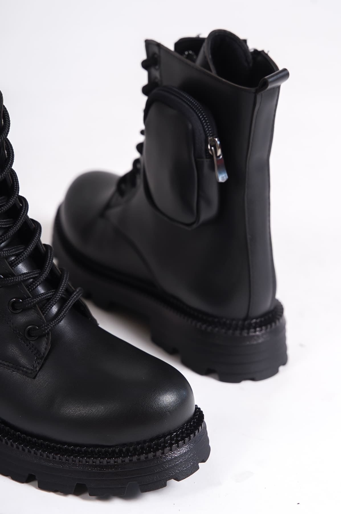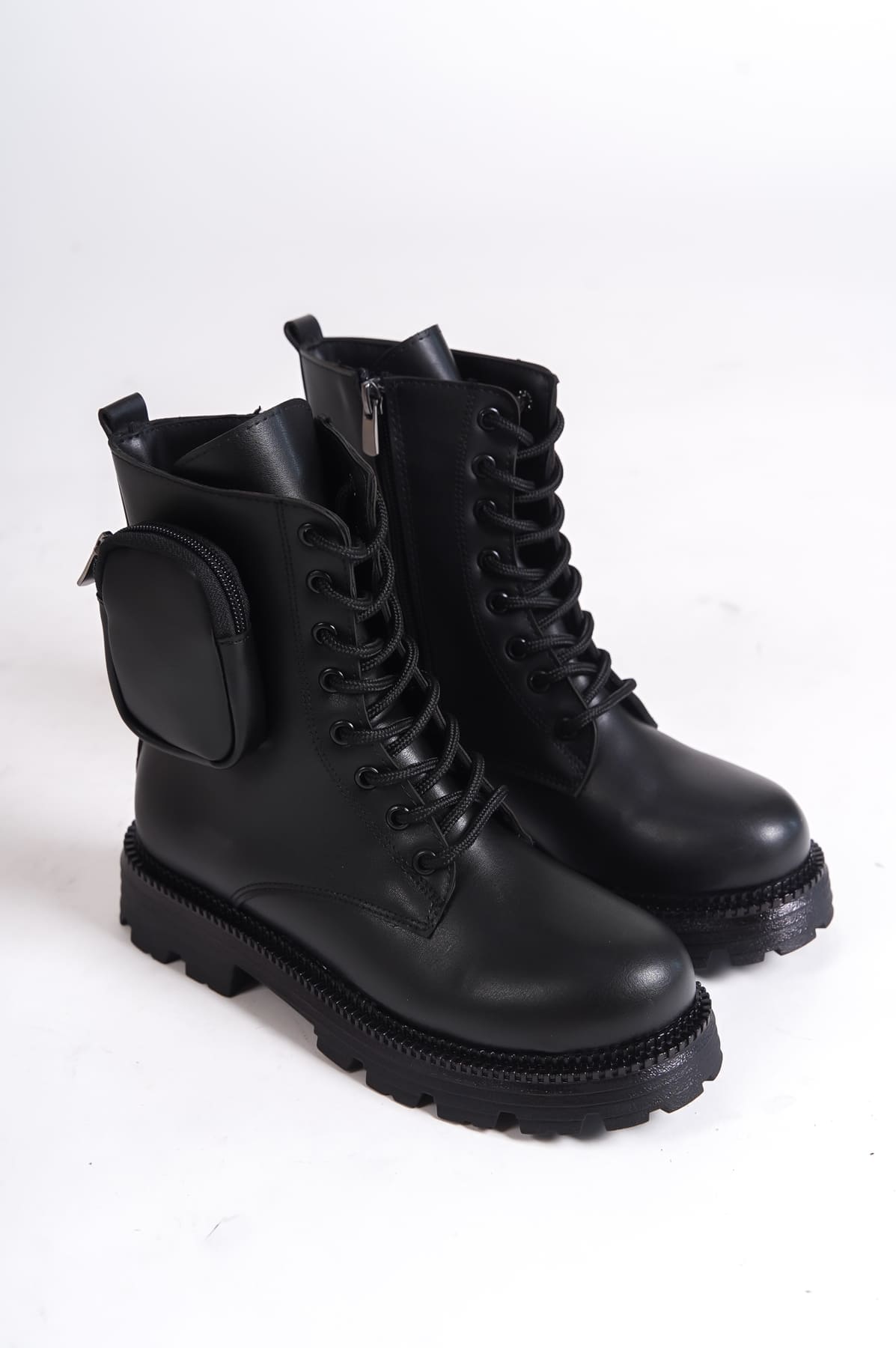 GINA Bağcıklı Fermuarlı Ortopedik Taban Çantalı Kadın Bot CST – Siyah