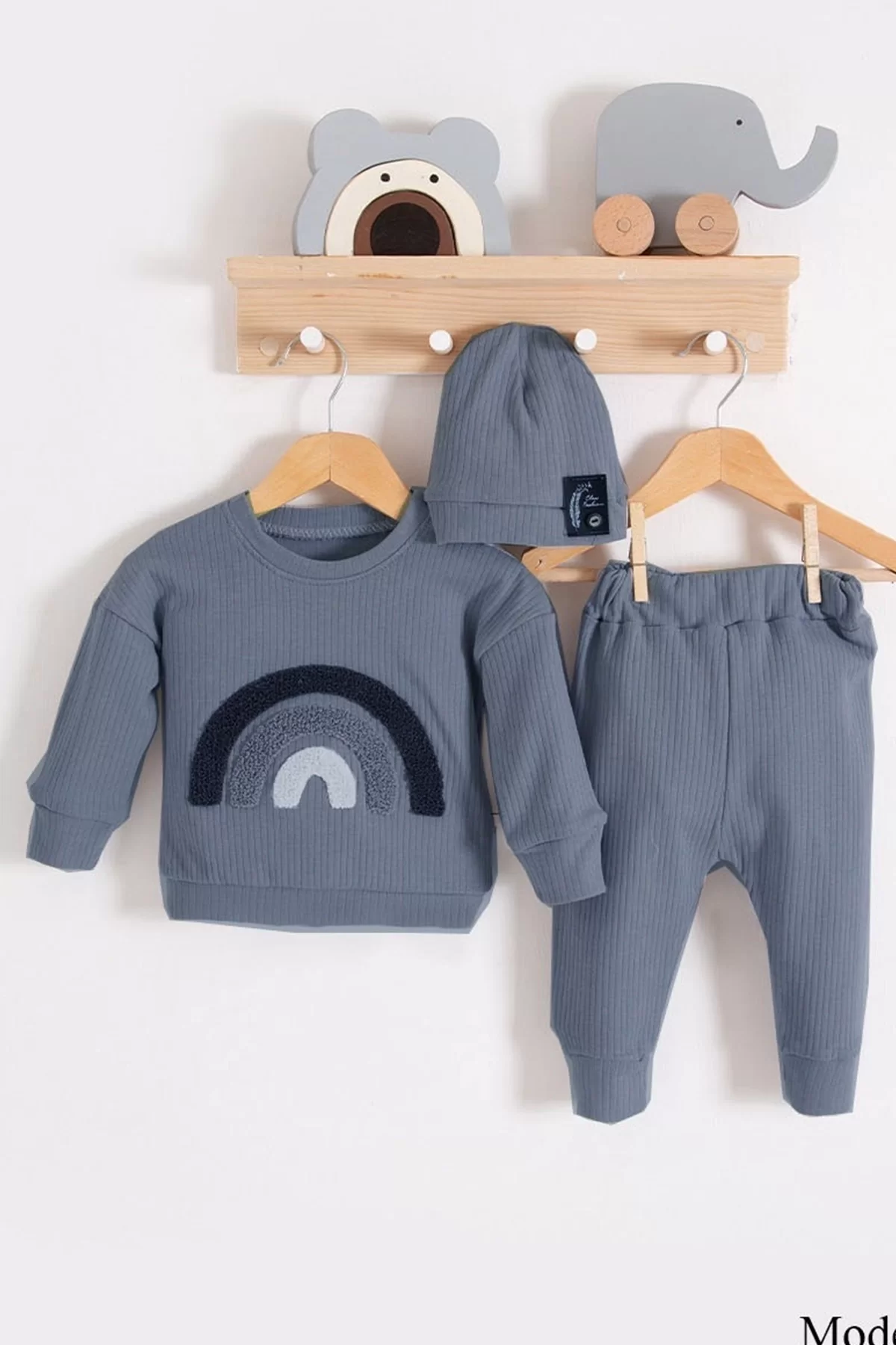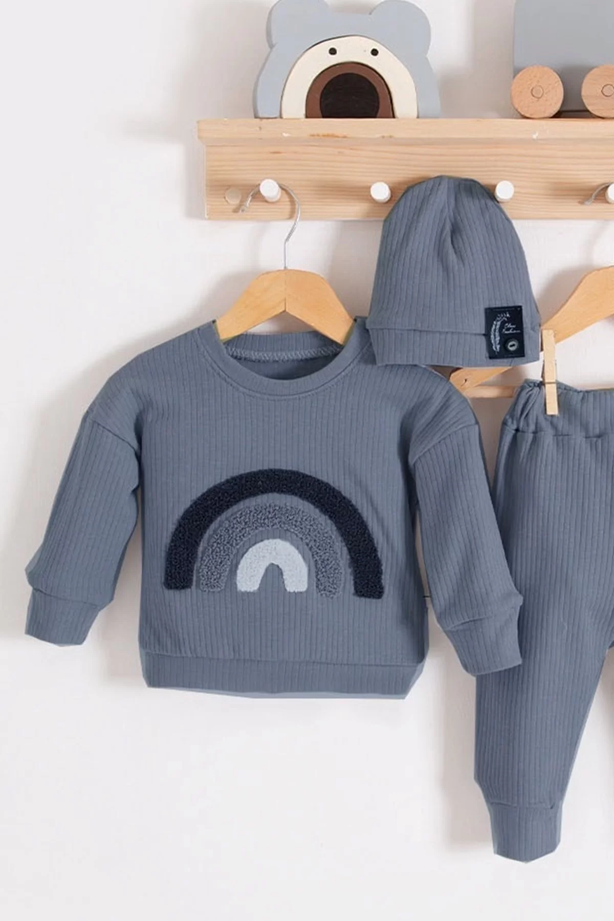 Gökkuşağı Nakışlı 2’li % 100 Pamuk Kız Bebek Takımı