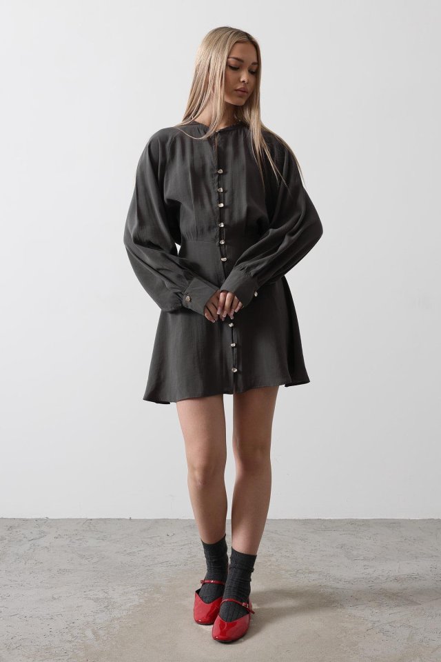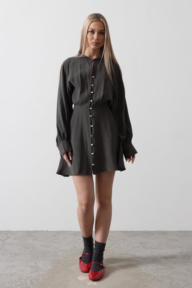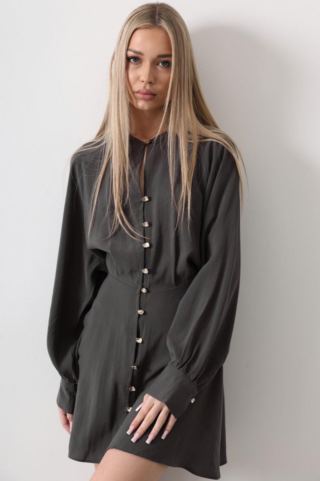 Gold Rengi Düğme Detaylı Elbise – Antrasit