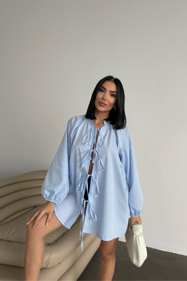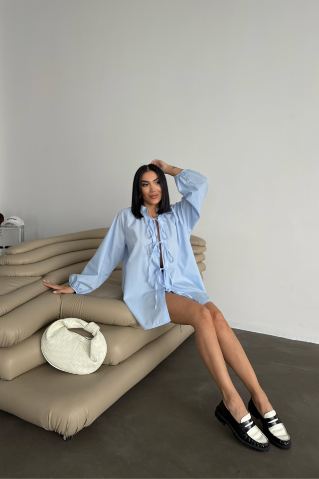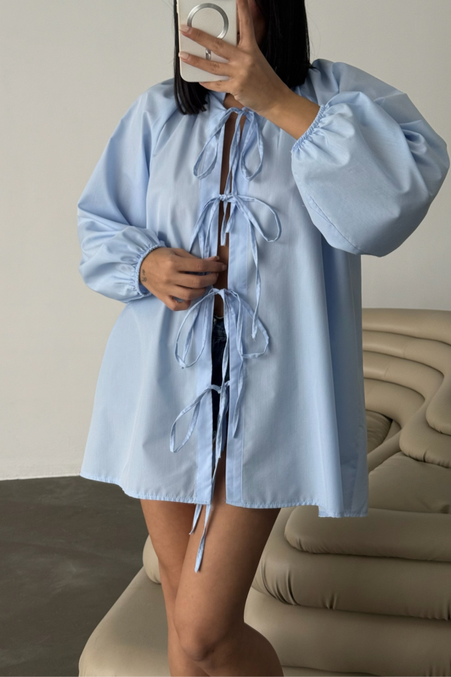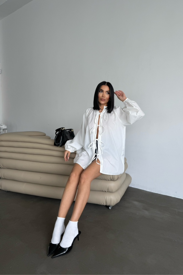 GÖMLEK POPLİN HAKİM YAKA ÖNDEN BAĞLAMA İP DETAYLI – Beyaz