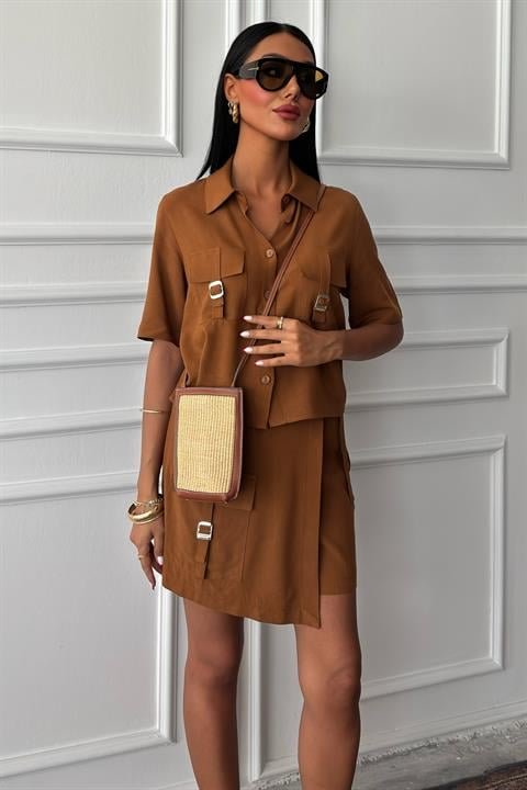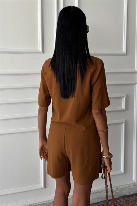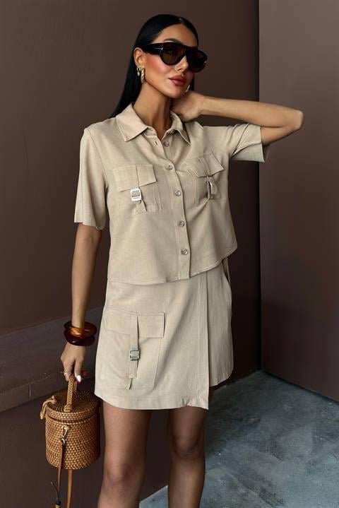 Gömlek Şort Etek Viscon Keten Takım 10162