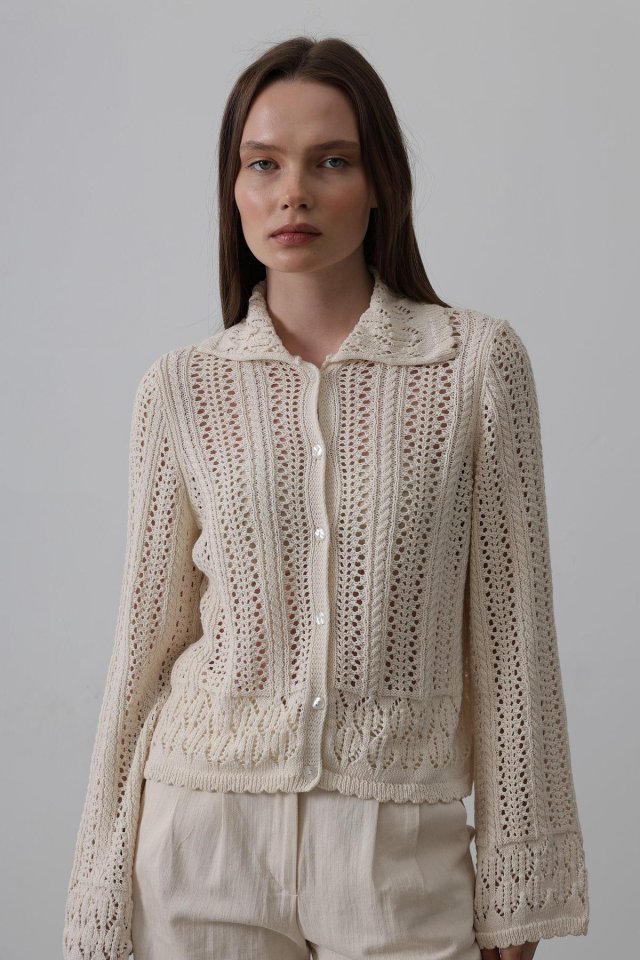 Gömlek Yaka Uzun Kol Triko – Ekru