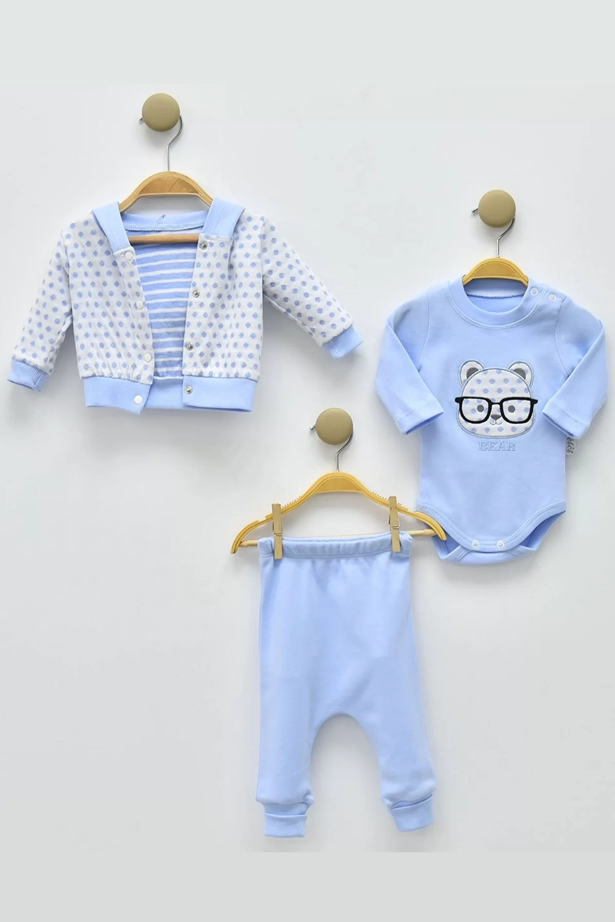 Gözlüklü Bear Puan Desenli 3’lü Erkek Bebek Takımı