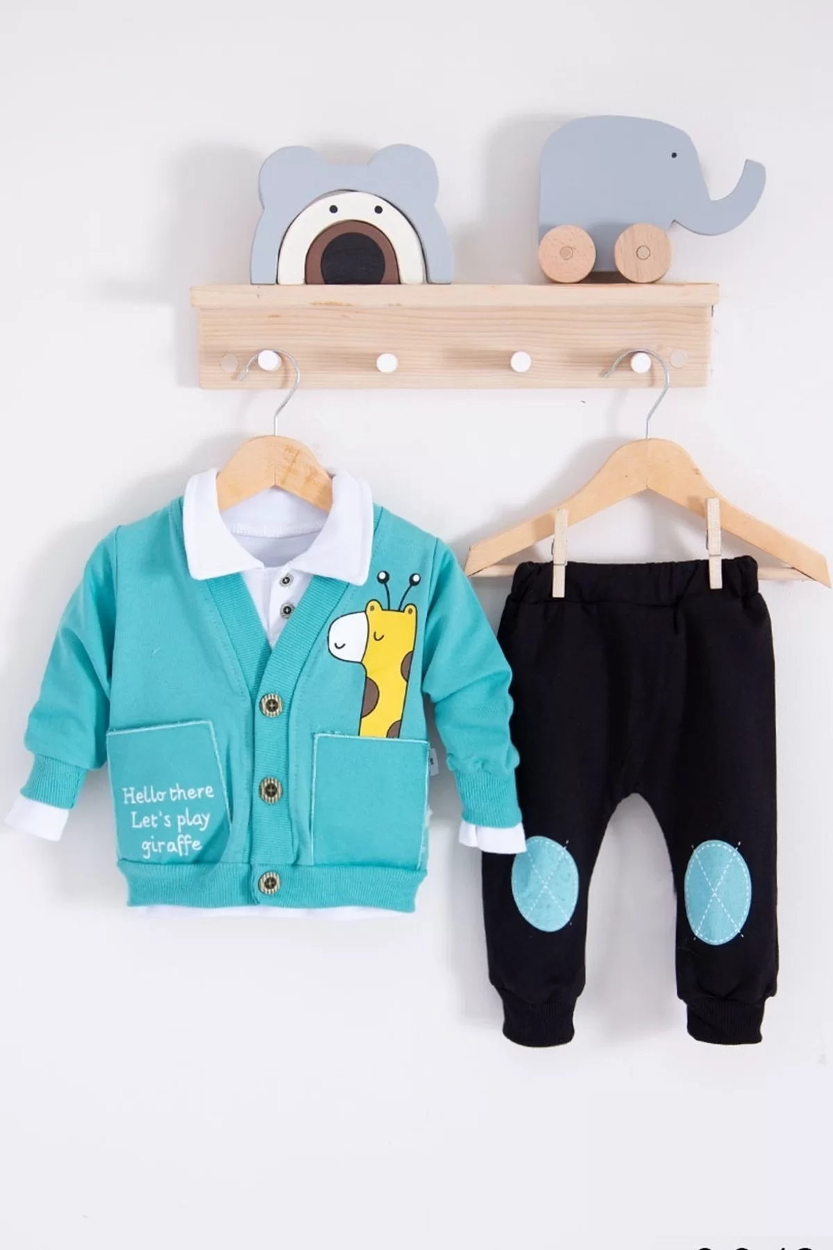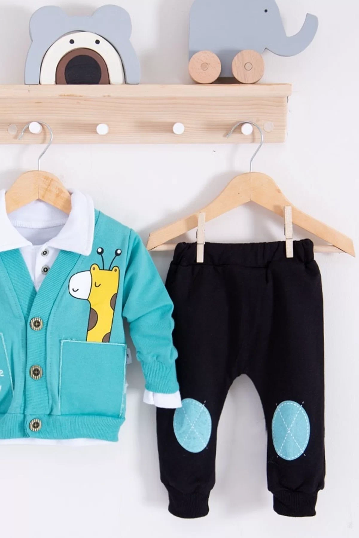 Graffe Zürafa Desenli 3’lü Erkek Bebek Takımı