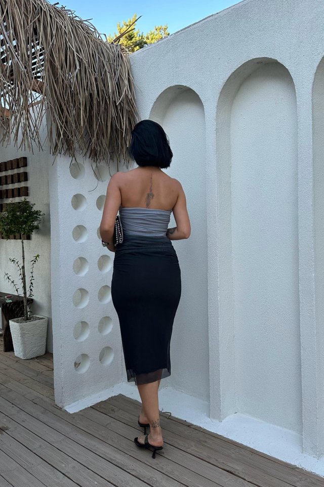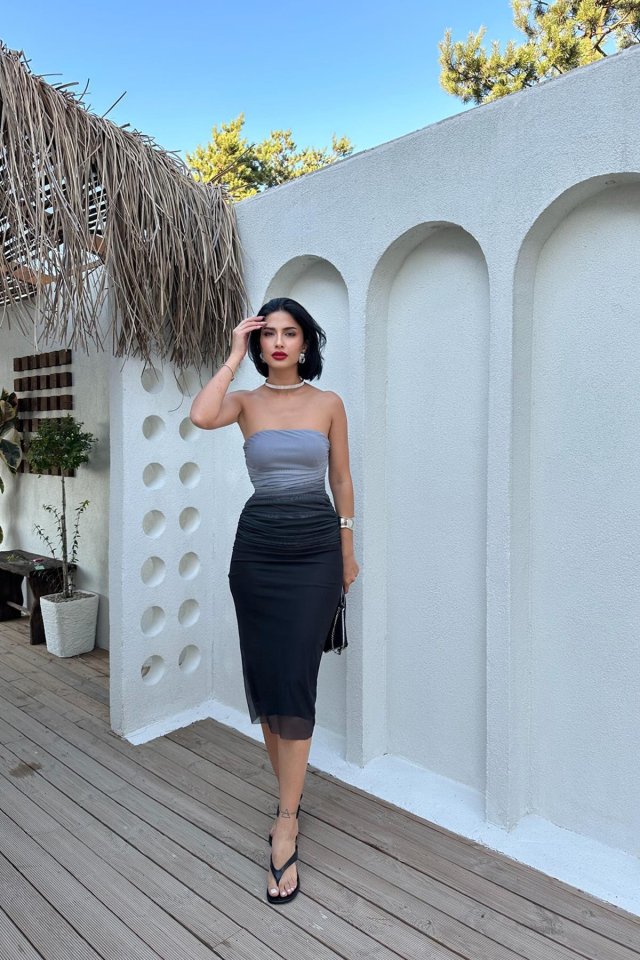 Modelin Ölçüleri: Boy:165, Kg:55, Göğüs:90, Bel:72, Kalça: 100