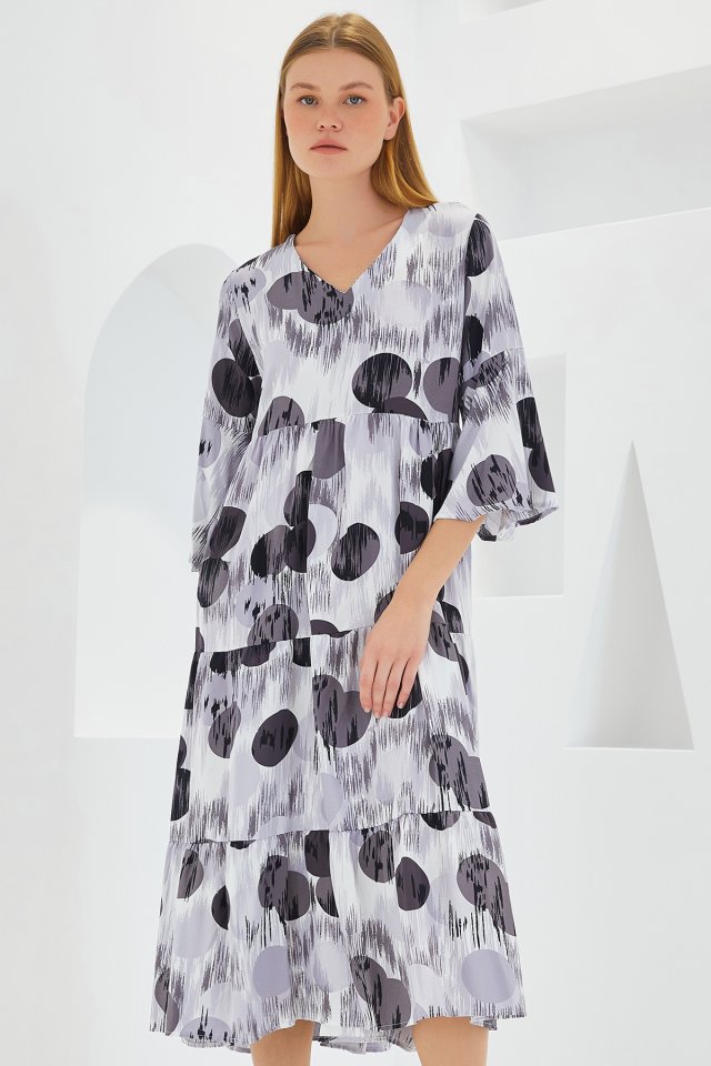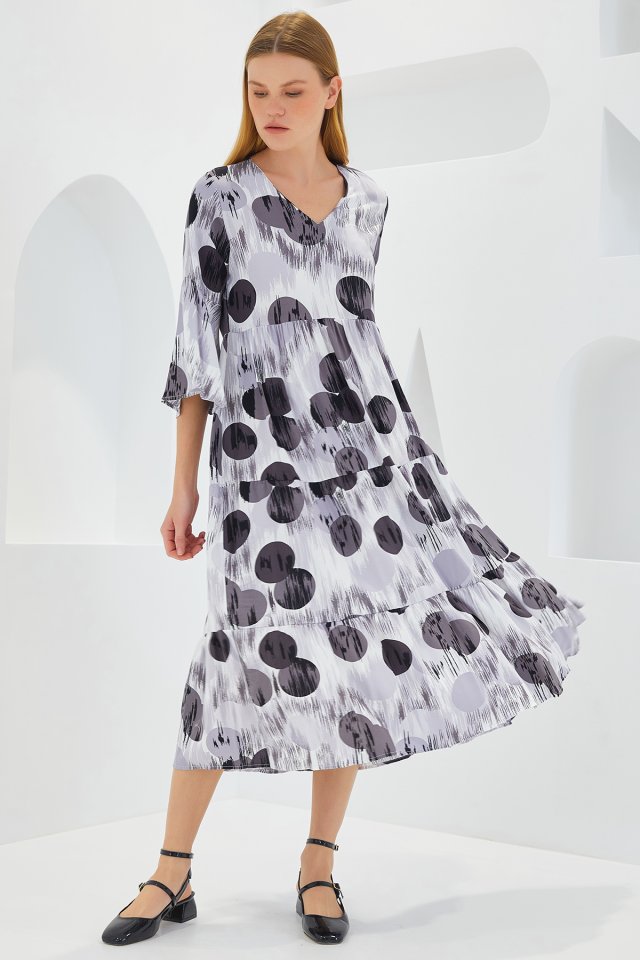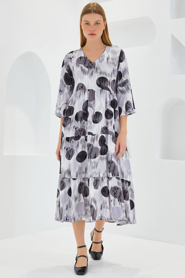 Gri Siyah Desenli Kısa Kol Viskon Elbise 1959