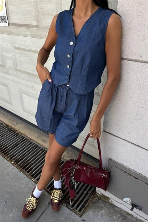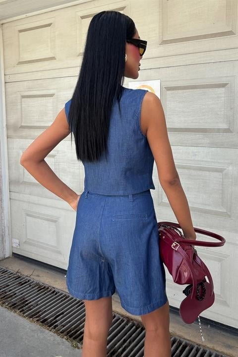 Gümüş Düğmeli Yelek Ve Şort Tensel Takım 10174