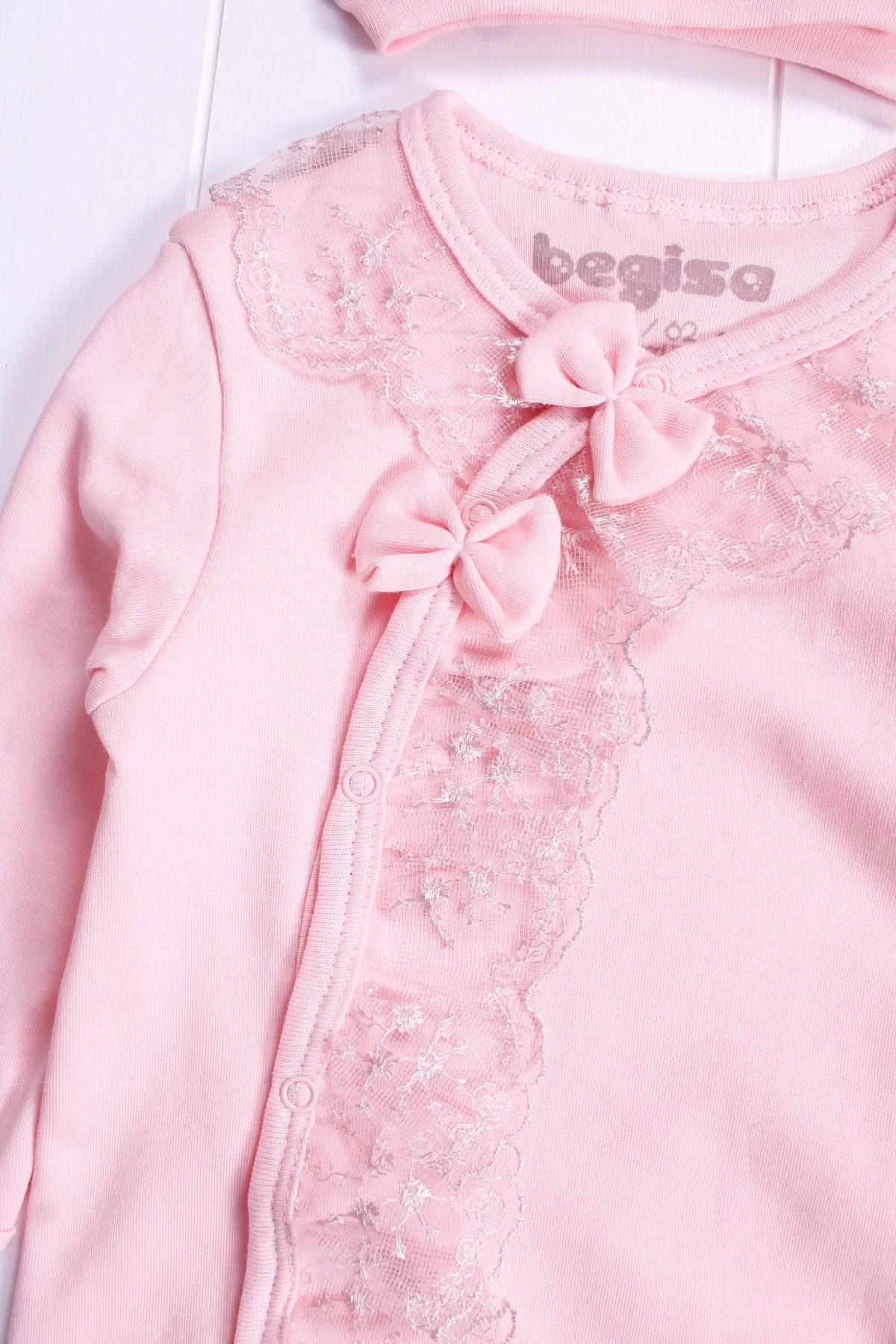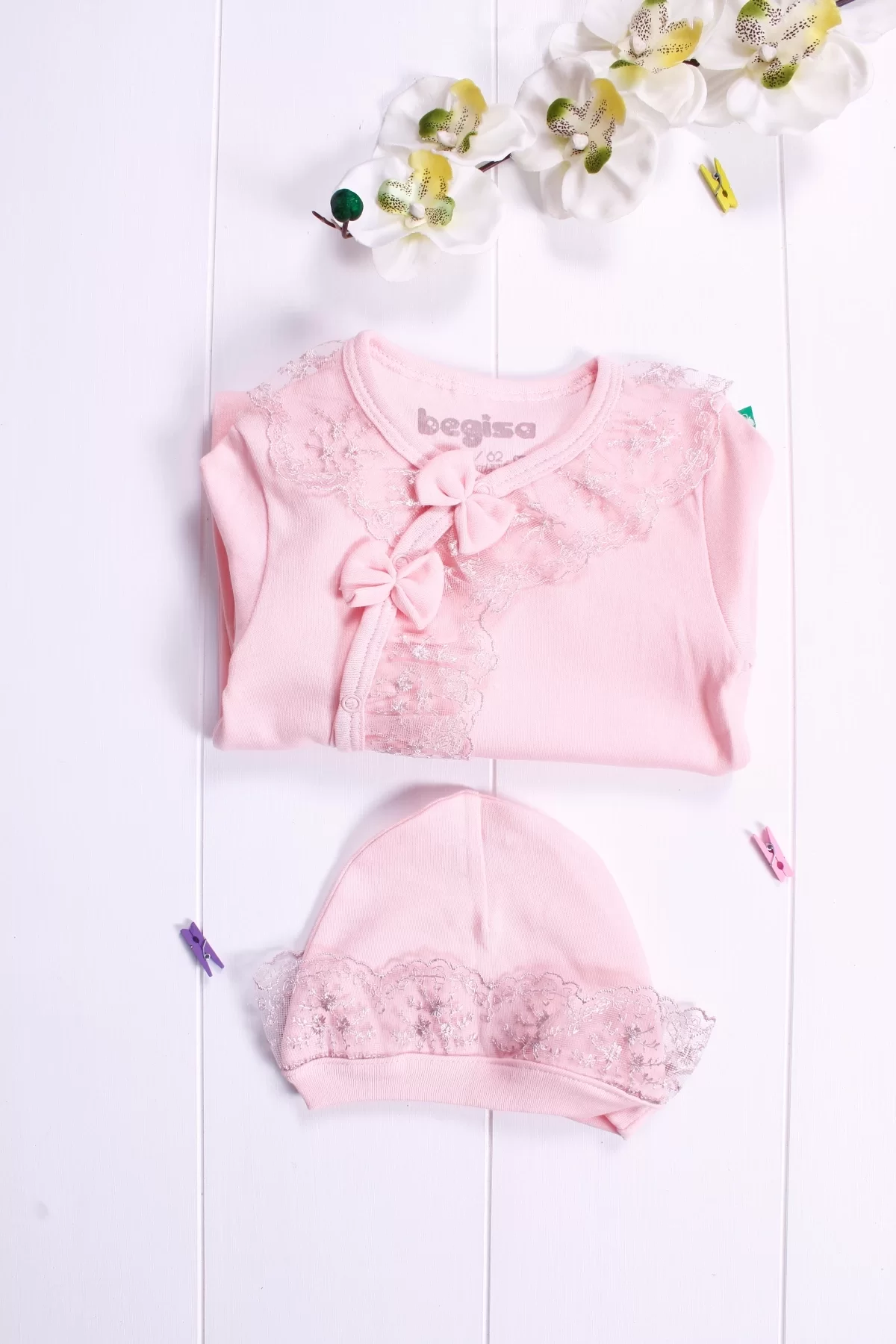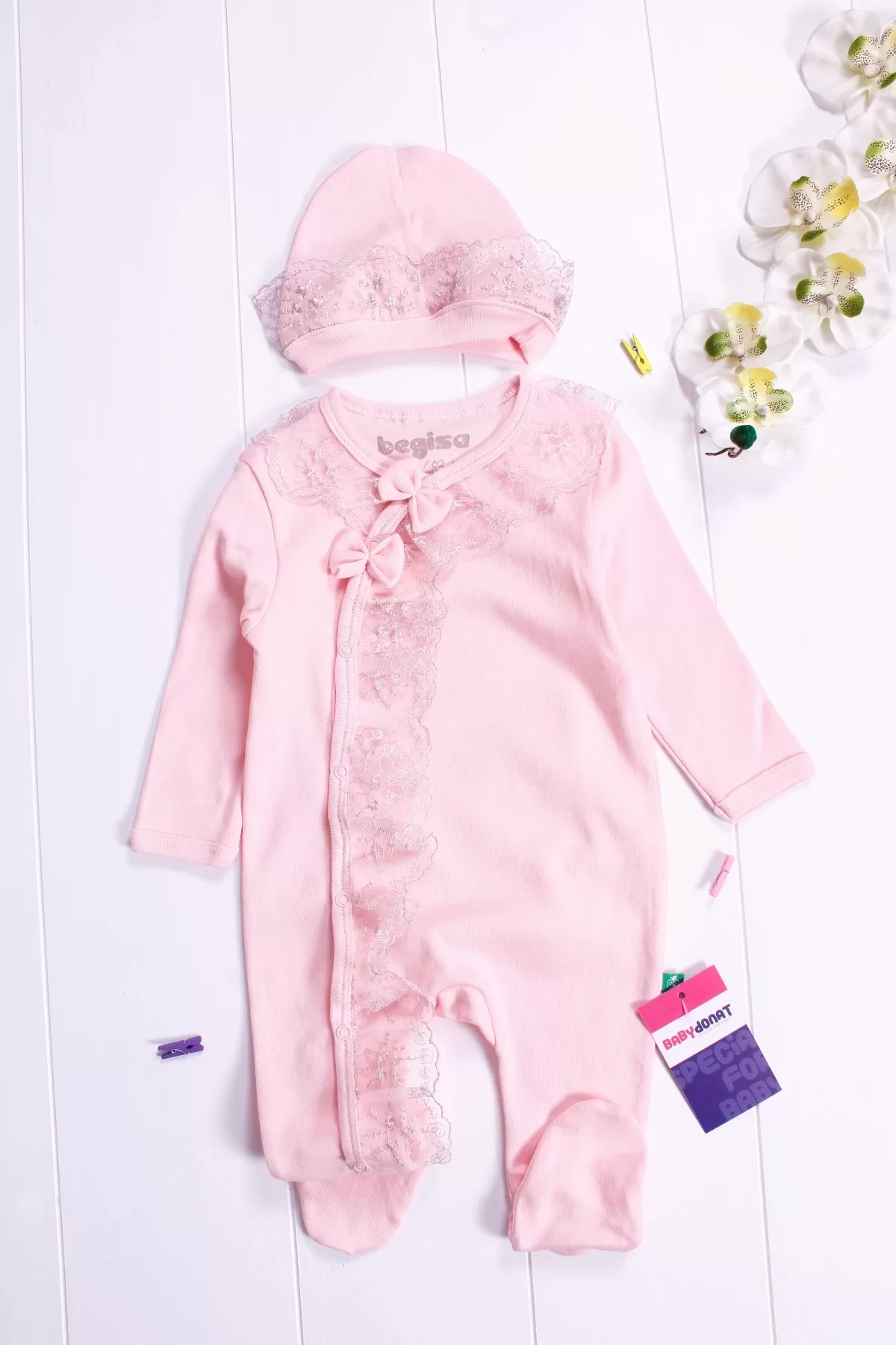 Güpür Detaylı Fistolu Şapkalı Kız Bebek Tulumu