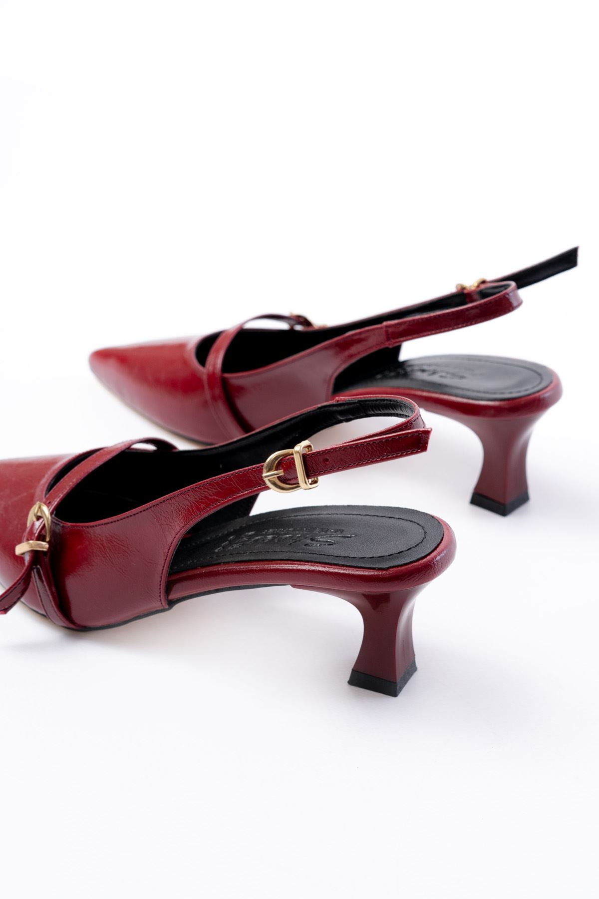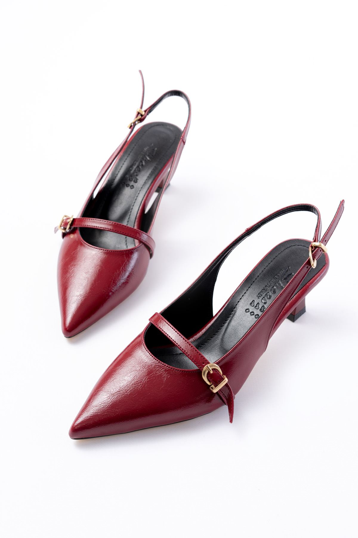 H-470 Bordo Rugan Baret Tokalı Arkası Açık Günlük Kadın Sandalet