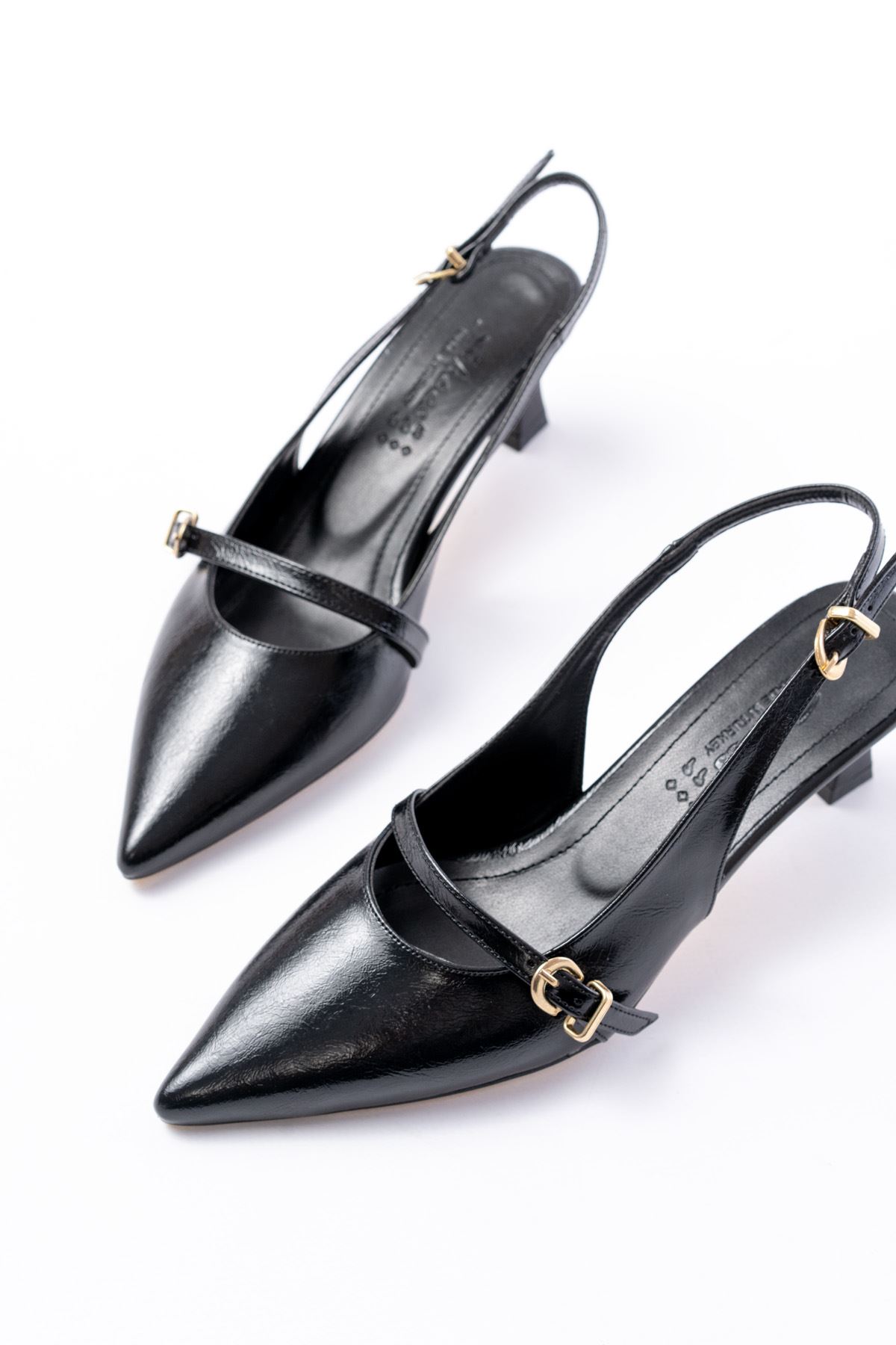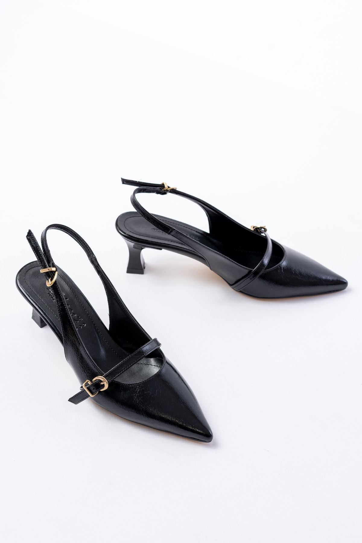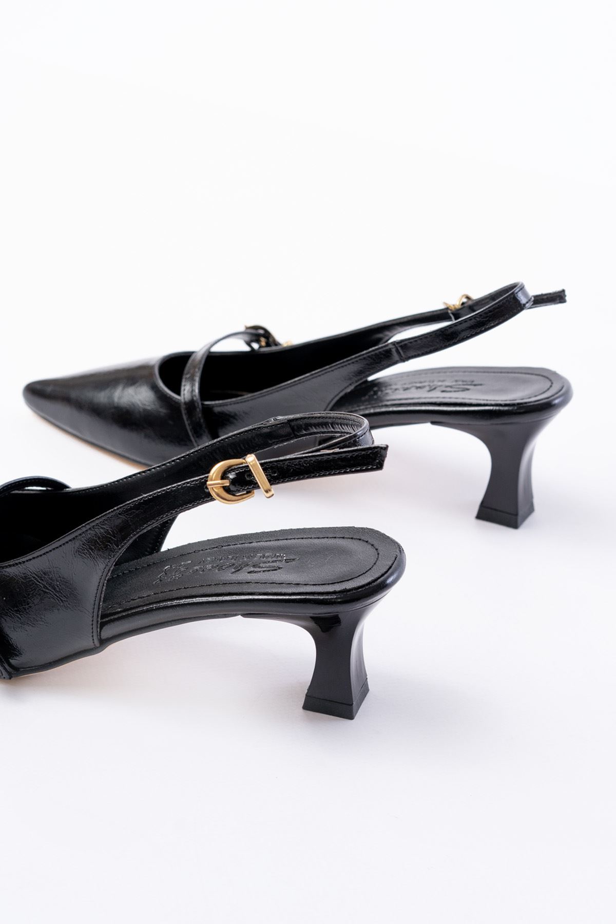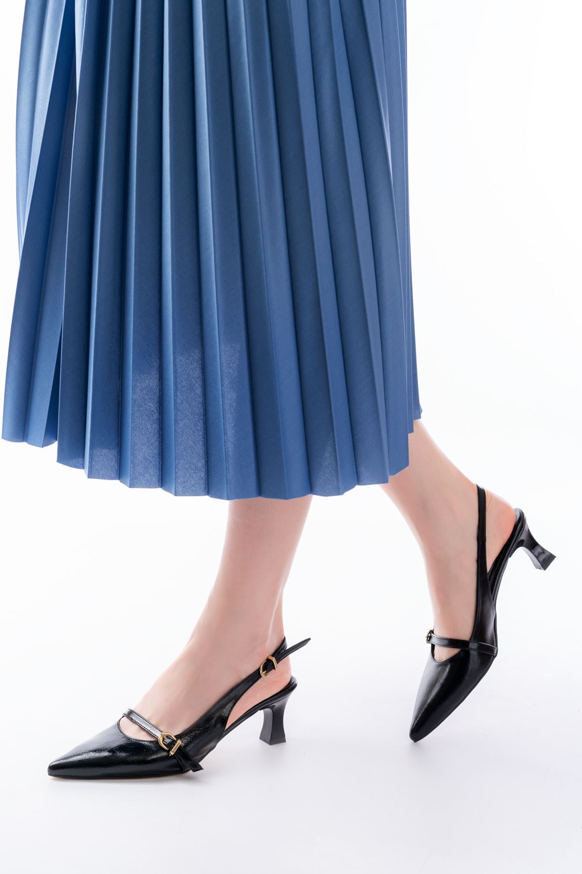 H-470 Siyah Rugan Baret Tokalı Arkası Açık Günlük Kadın Sandalet