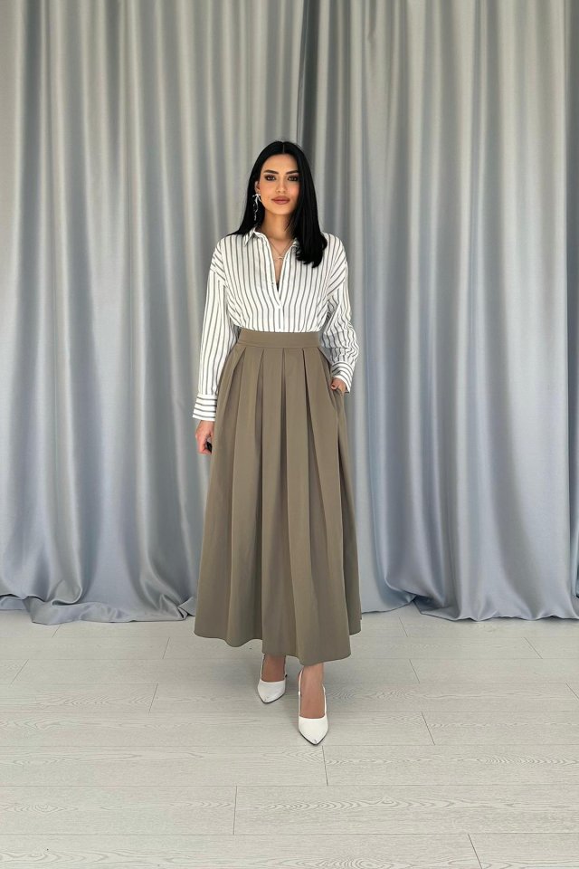 Haki Uzun Pileli Etek