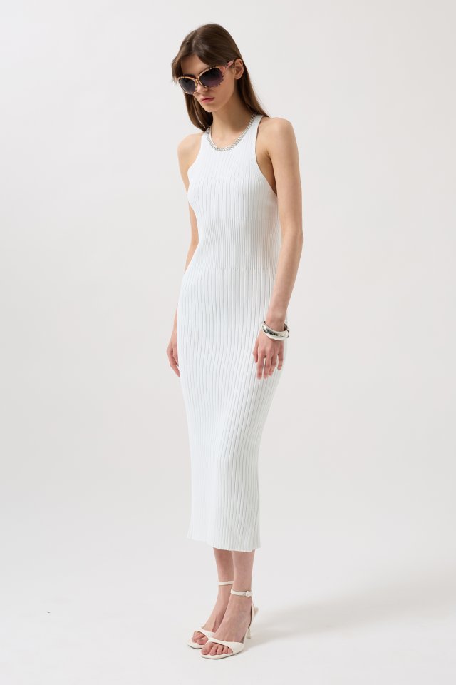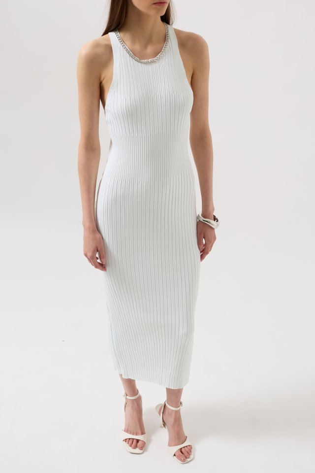 Halter Yaka Zincir Aksesuarlı Çapraz Askılı Elbise