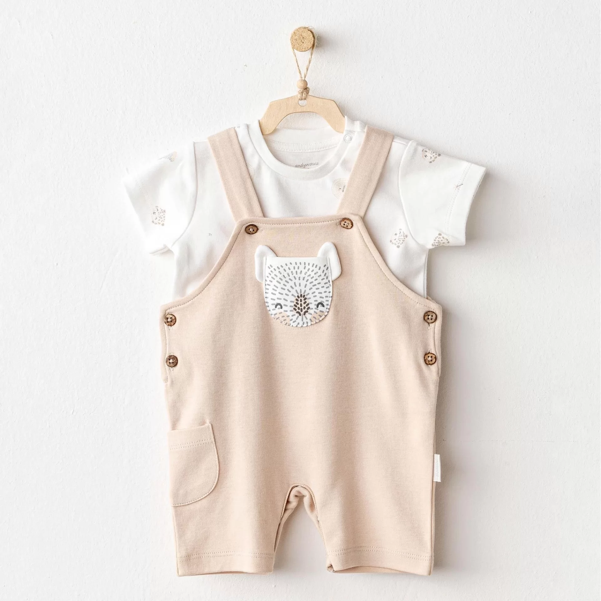 Romantik Çift Baykuş Nakışlı 5li Zıbın Takımı Hastane Çıkışı Ekru