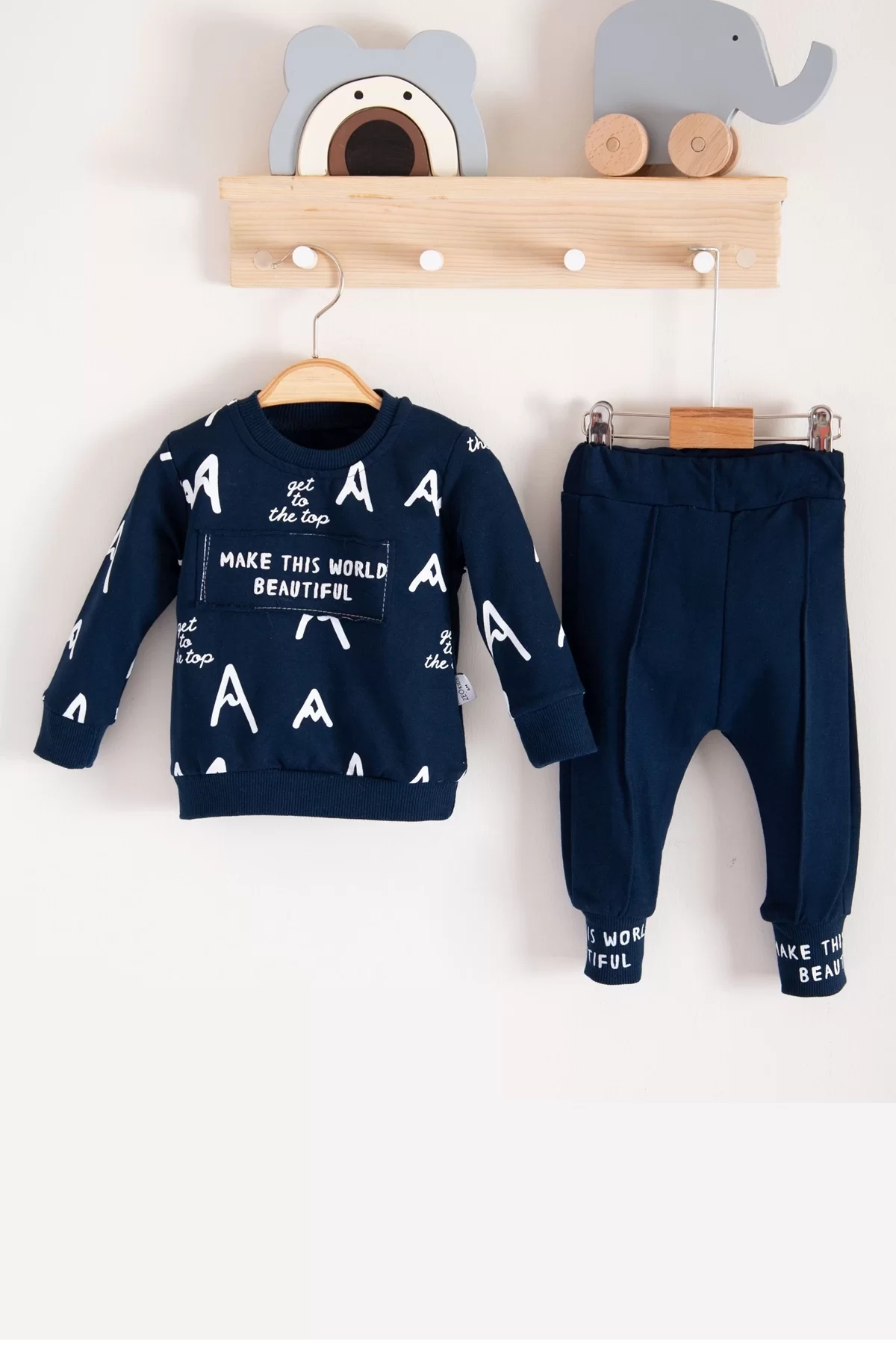 Harf Baskılı 2’li % 100 Pamuk Erkek Bebek Takımı.