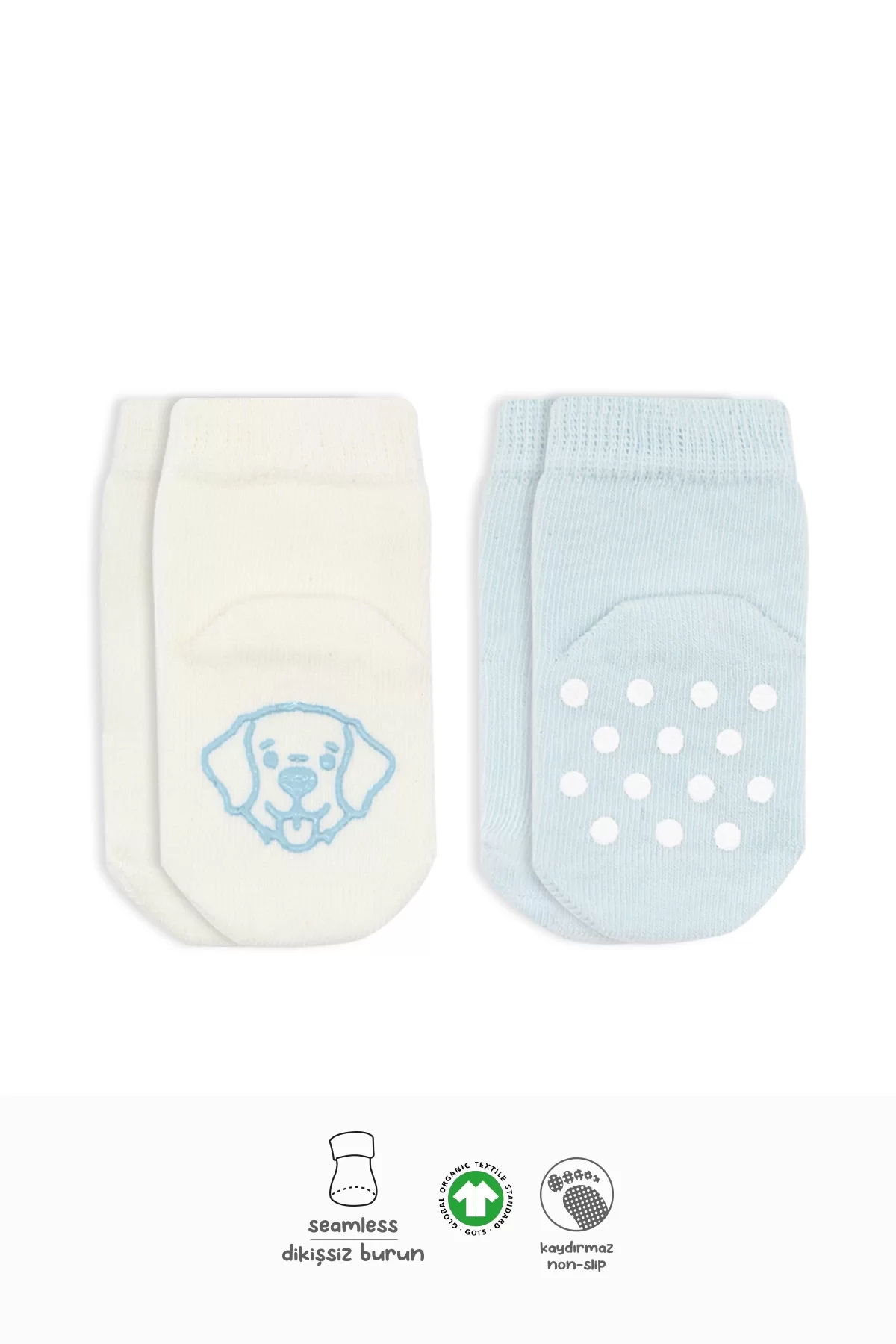 Hayvan Figürlü Kaymaz Soket Çorap 2’li Mavi Ekru