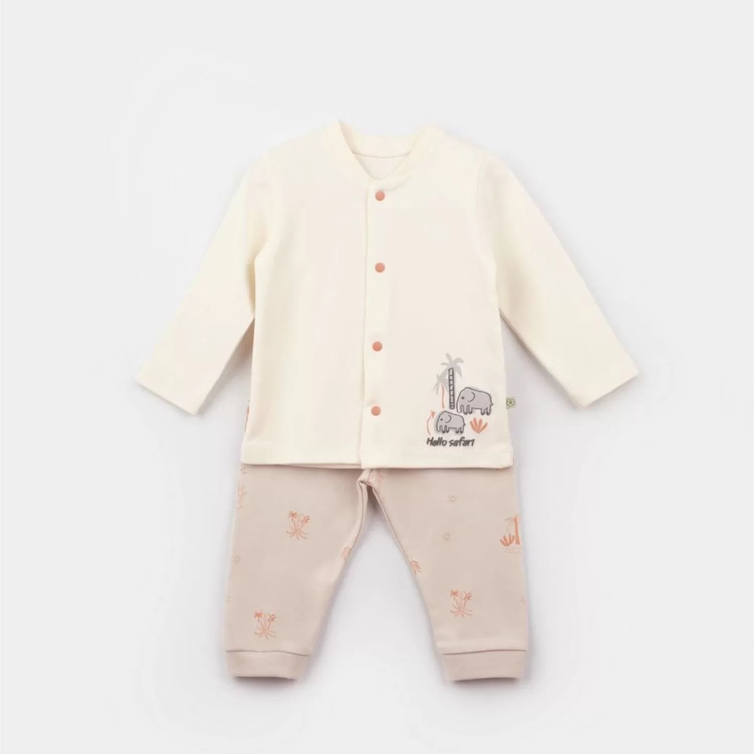 Hello Safari Bebek Pijama Takımı Ekru Kiremit