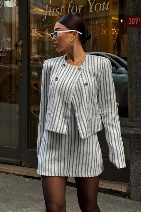 Hendra Çizgili Etek Takım 9481-24