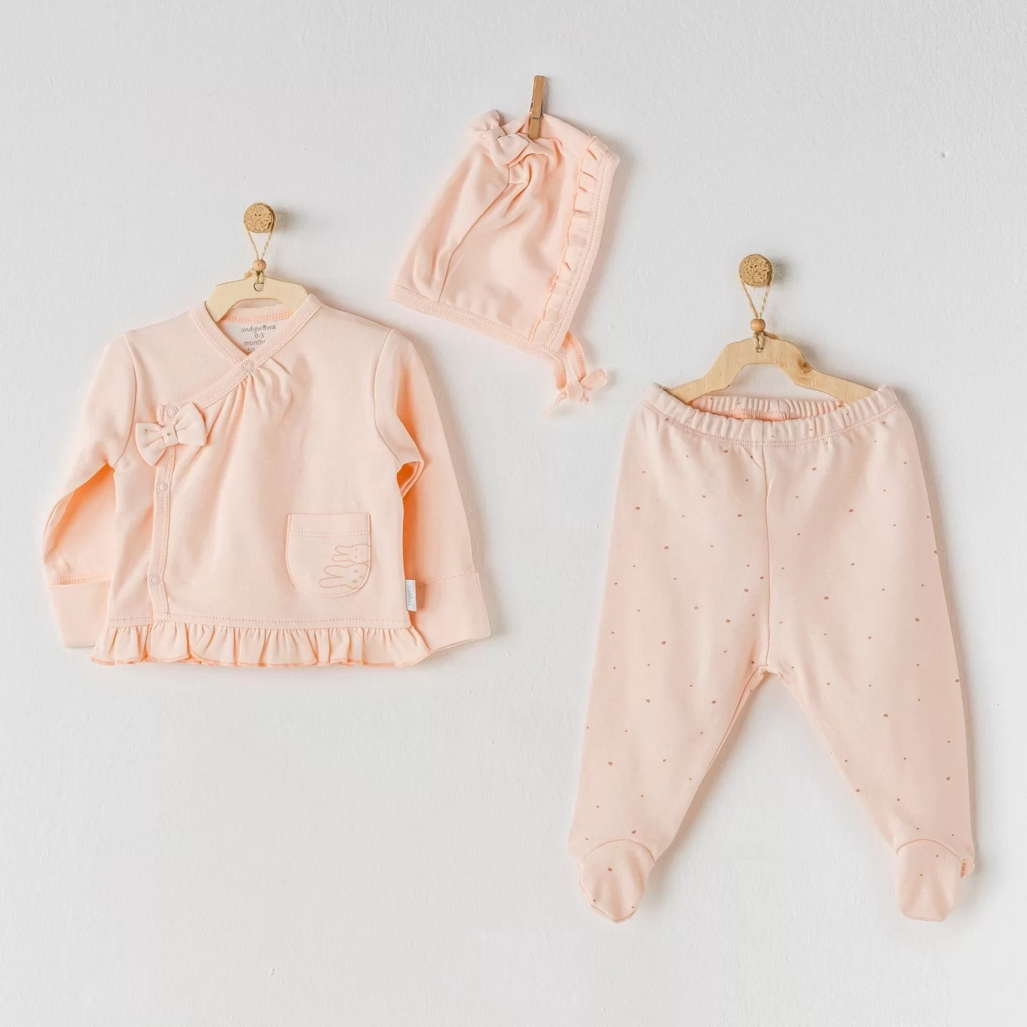 Hiding Rabbits 3 Parça Bebe Zıbın Takımı Salmon