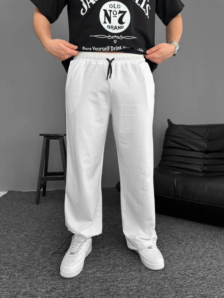 İki İplik Kumaş Baggy Alt Esofman – Beyaz