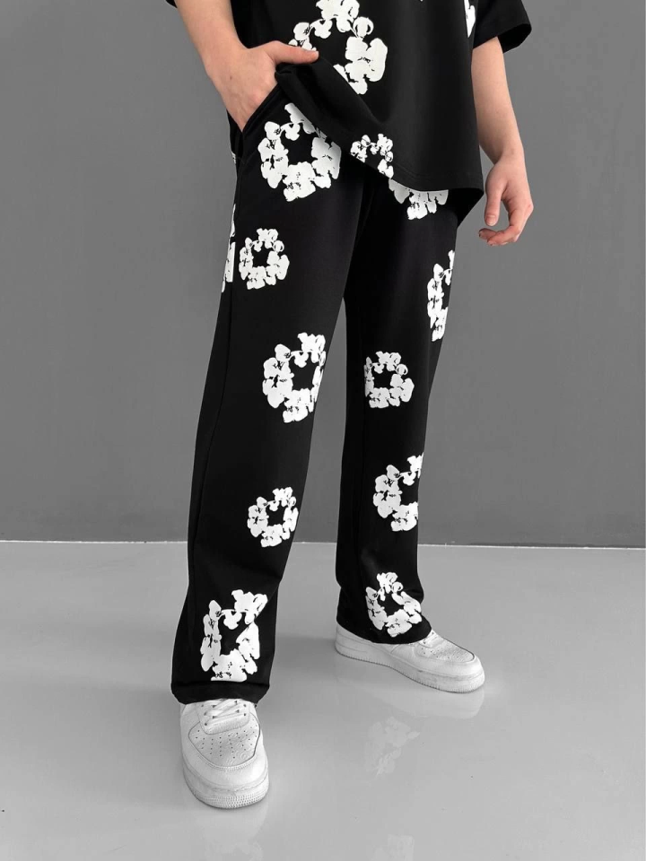 Iki İplik Kumaş Baskılı Esofman – Siyah