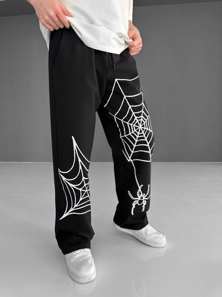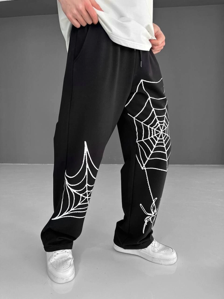 İki İplik Kumaş Örümcek Baskılı Esofman – Siyah