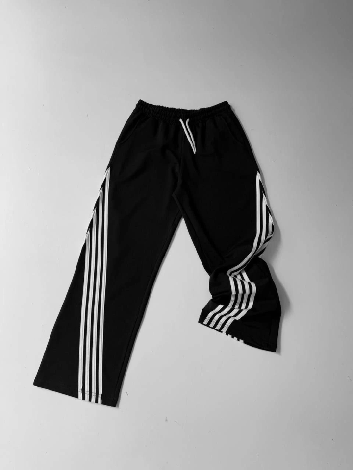İki İplik Kumaş Şeritli Alt Esofman – Siyah