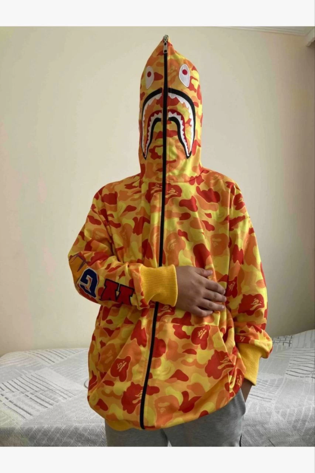 İki İplik Zıp Fermuarlı Nakışlı Kapşonlu Hırka – Sarı