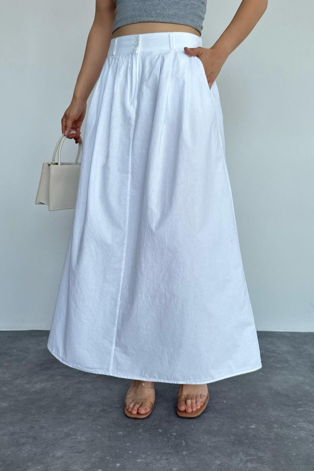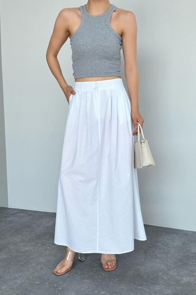 İnce Pileli Düz Etek – Beyaz