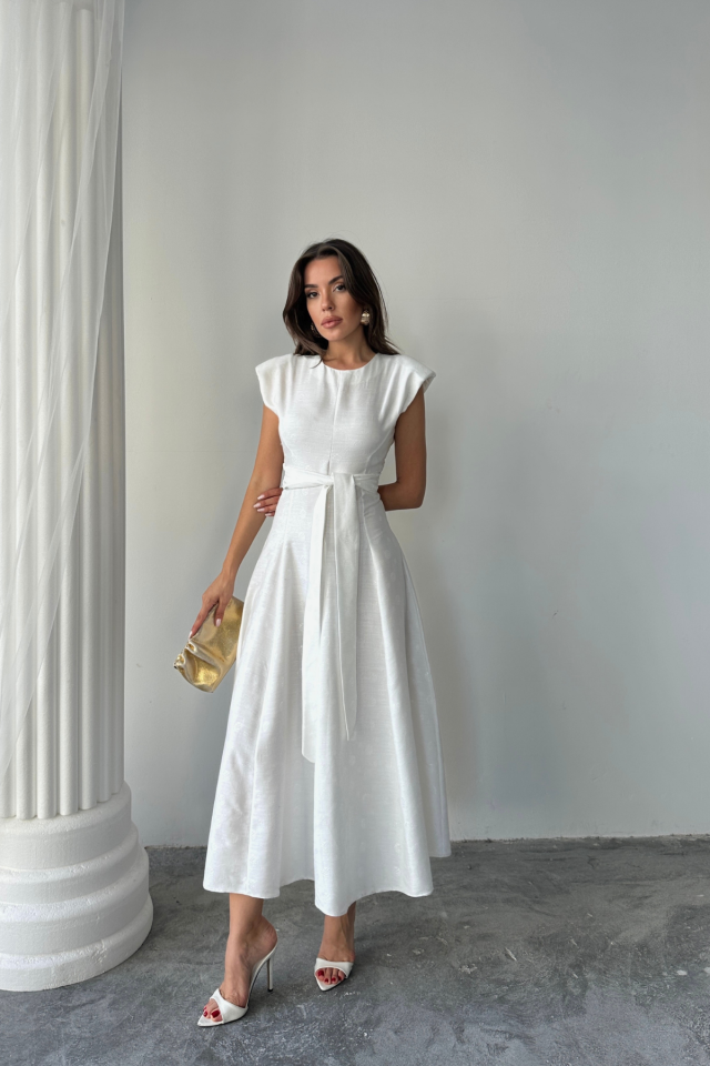JAKAR KETEN VATKALI ELBİSE – Beyaz