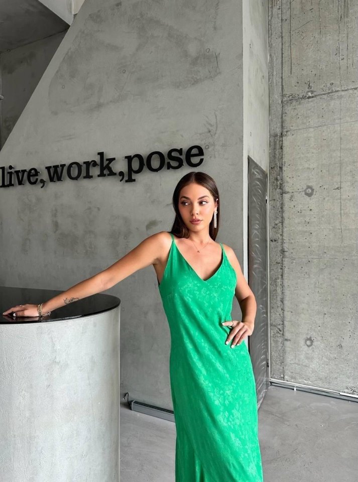 Modelin Ölçüleri: Boy:165, Kg:55, Göğüs:90, Bel:72, Kalça: 100