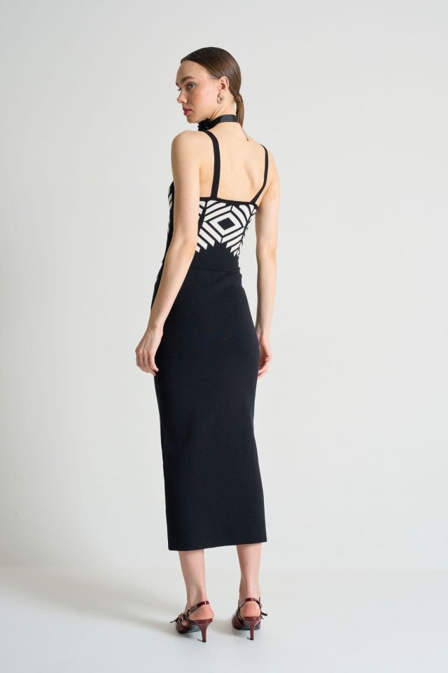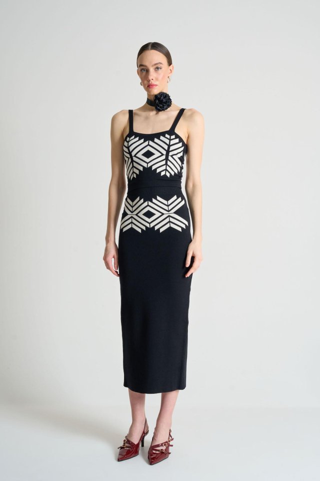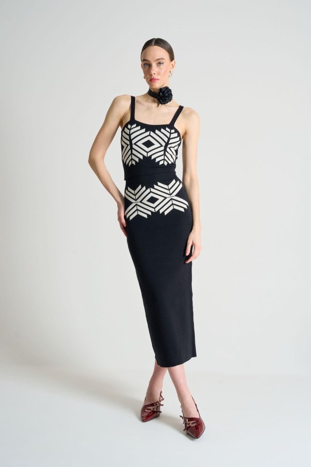Jakarlı İnce AskılıTriko Takım – Siyah-Beyaz Kayısı