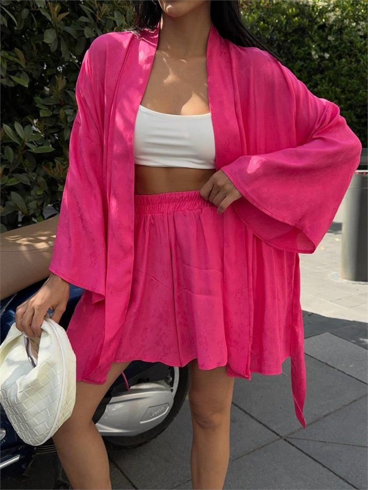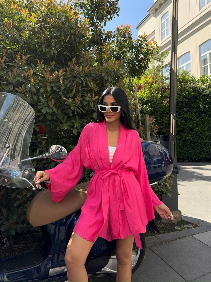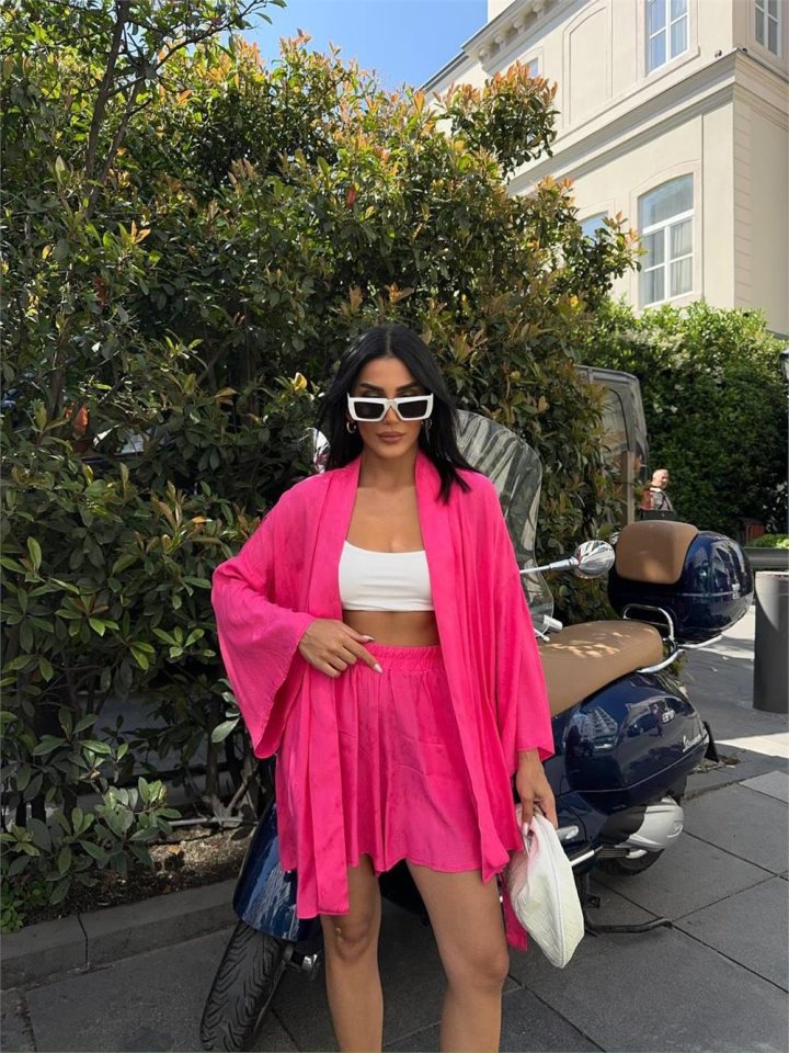 JAKARLI KİMONO – ŞORT TAKIM – Fuşya