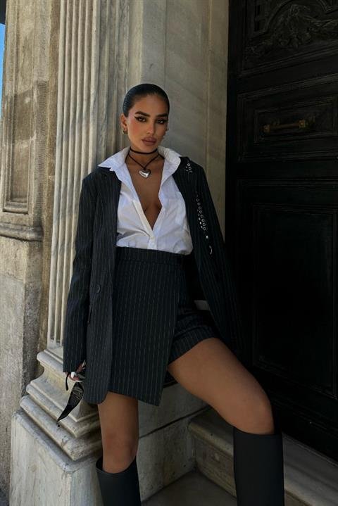 Jerry Şort Etekli Çizgili Takım 9691-24