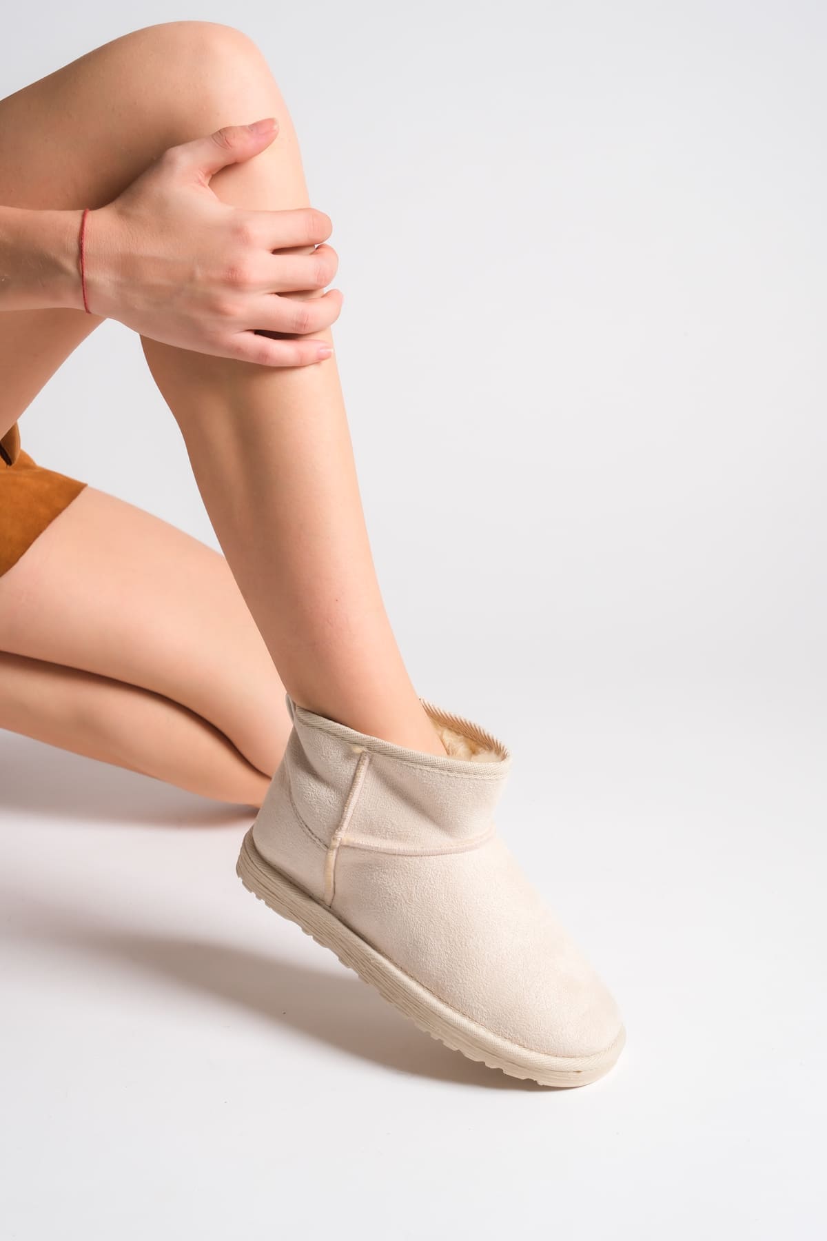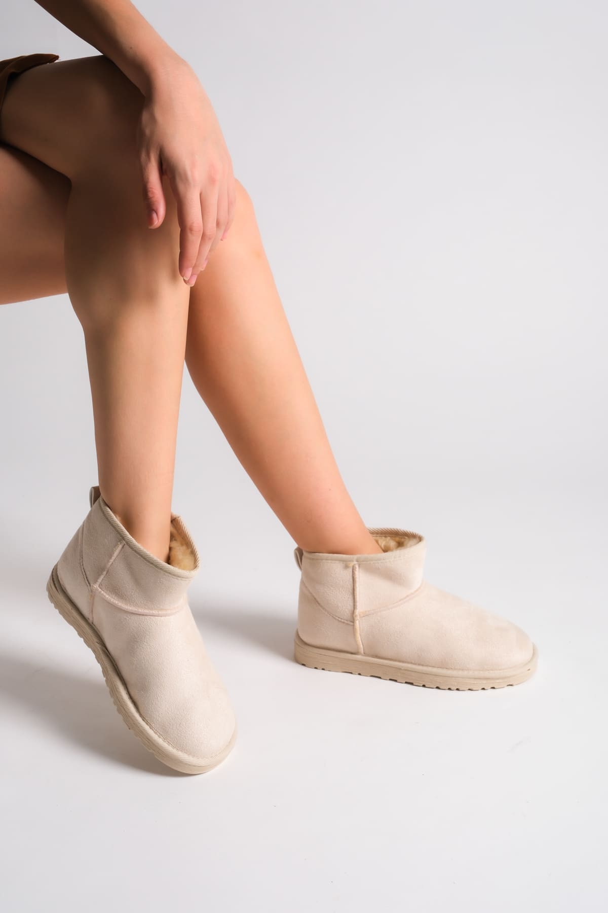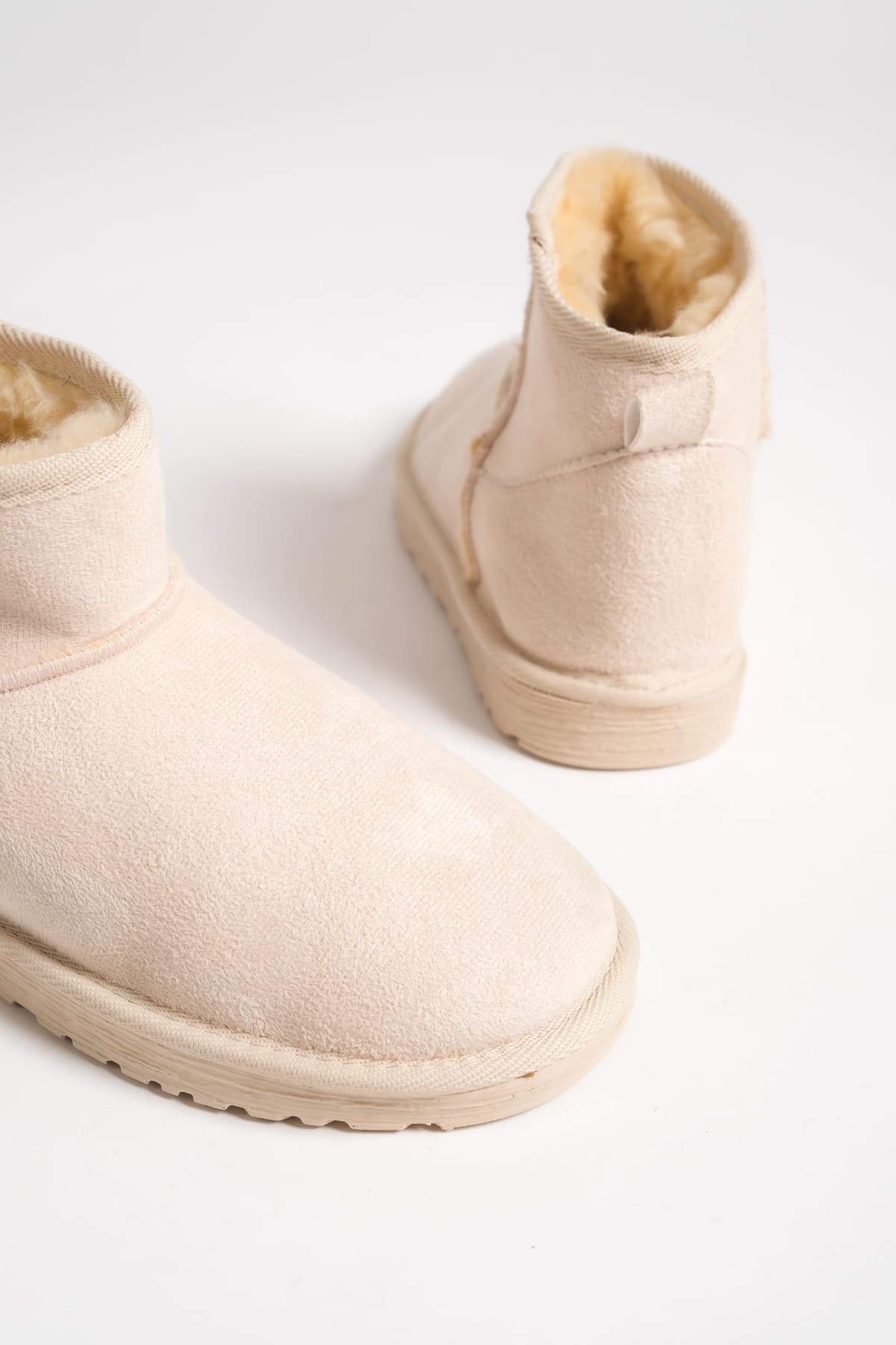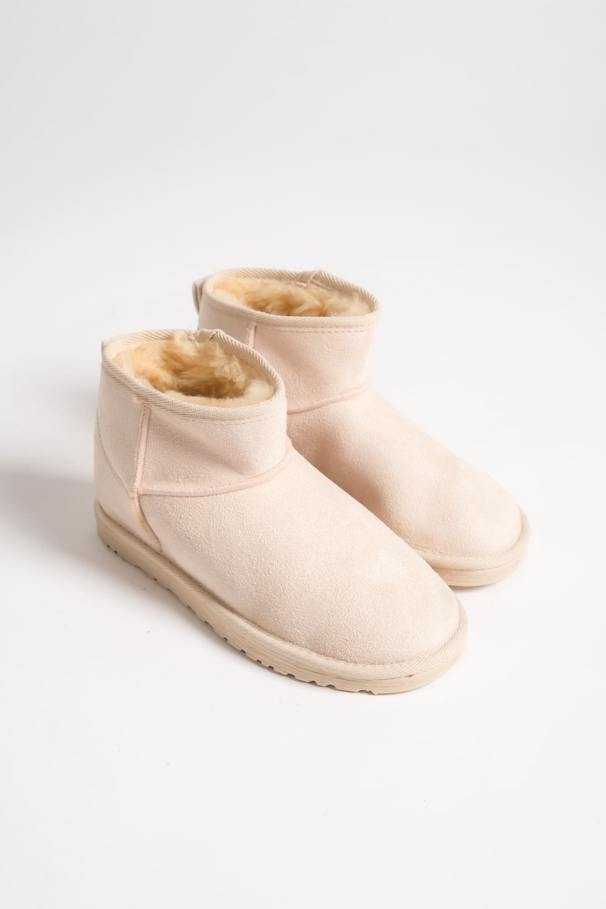 JOLIE Bağcıksız Düz Taban İçi Kürklü Kısa Süet Kadın Bot SKT – Krem
