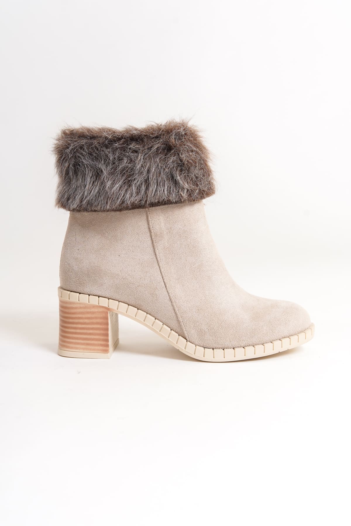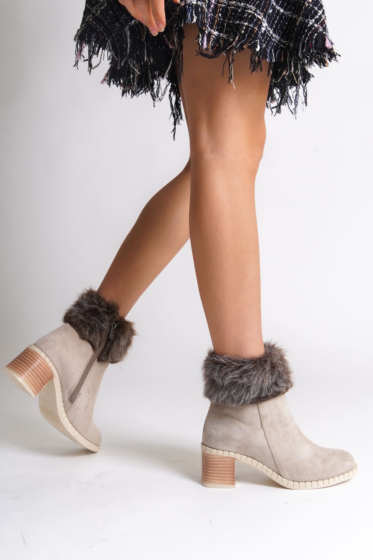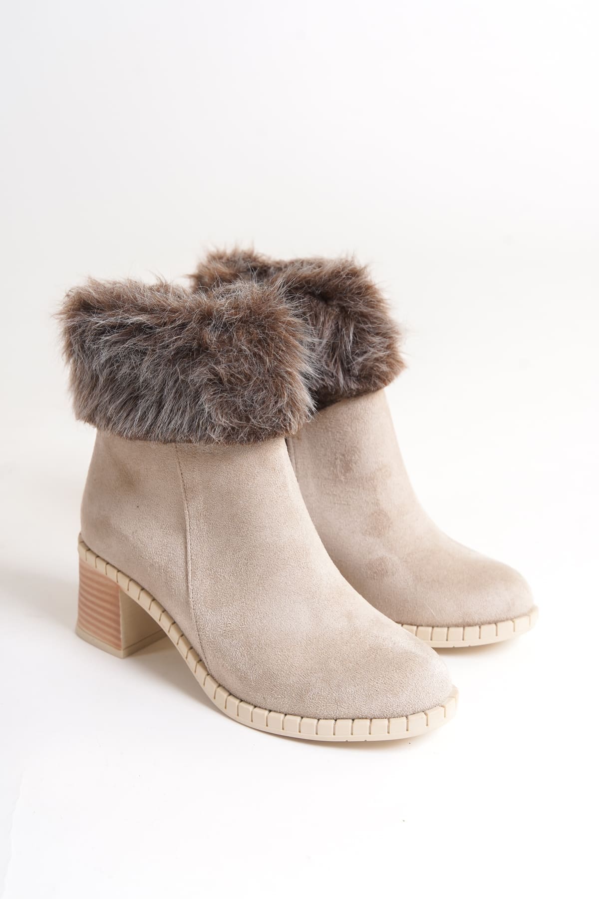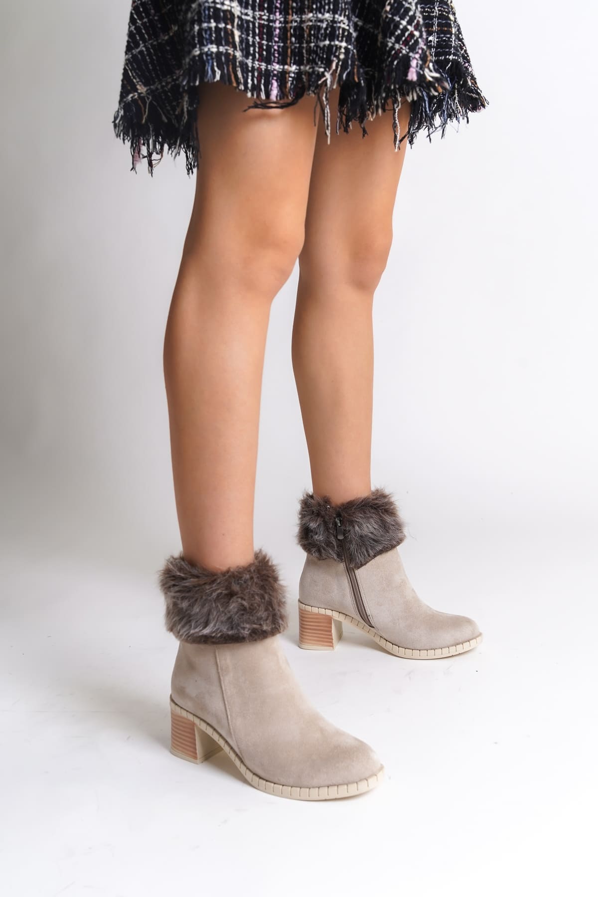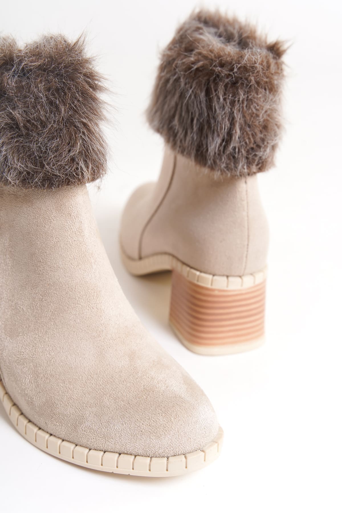 JULIA Fermuarlı Ortopedik Taban Tüylü Topuklu Süet Kadın Bot SKT – Krem
