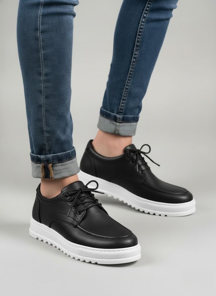 JY-T12x Arts Bağcıklı Cilt Erkek Günlük Spor Klasik Ayakkabı CBT – Siyah