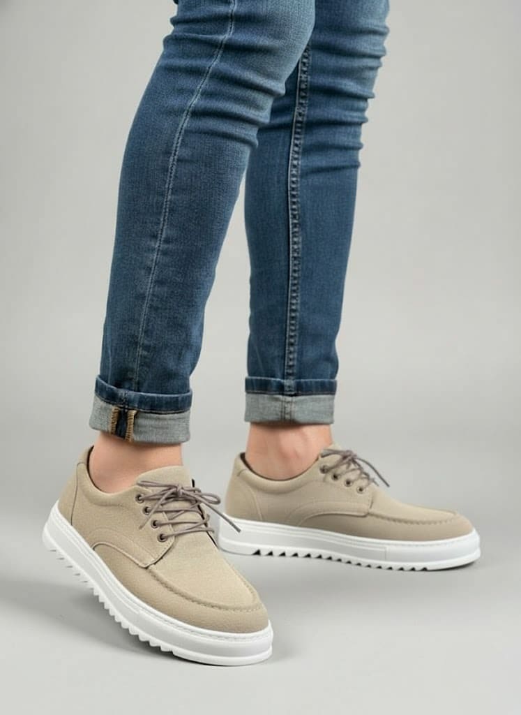 JY-T12x Arts Bağcıklı Süet Erkek Günlük Spor Klasik Ayakkabı SBT – Krem