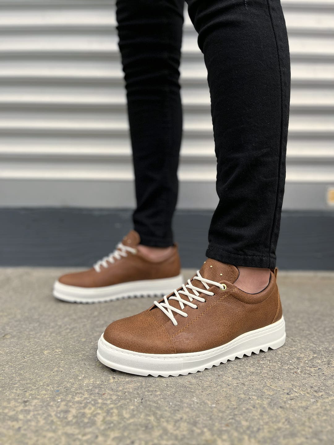 JY152 Cool Bağcıklı Cilt Erkek Günlük Spor Klasik Ayakkabı CBT – Taba