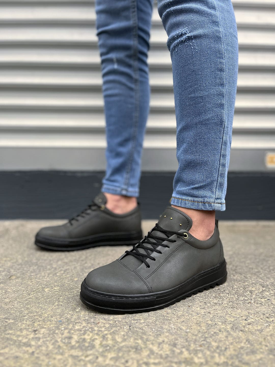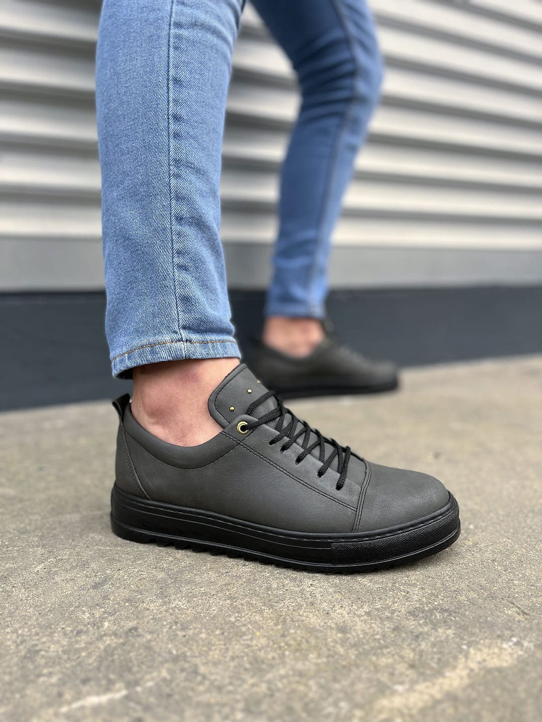 JY152 Cool Bağcıklı Cilt Erkek Günlük Spor Klasik Ayakkabı CST – Füme