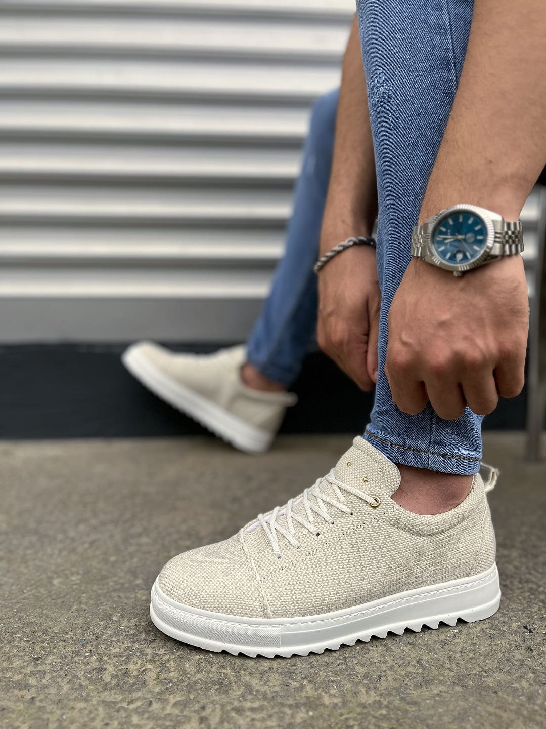 JY152 Cool Bağcıklı Keten Erkek Günlük Spor Klasik Ayakkabı KBT – Beyaz