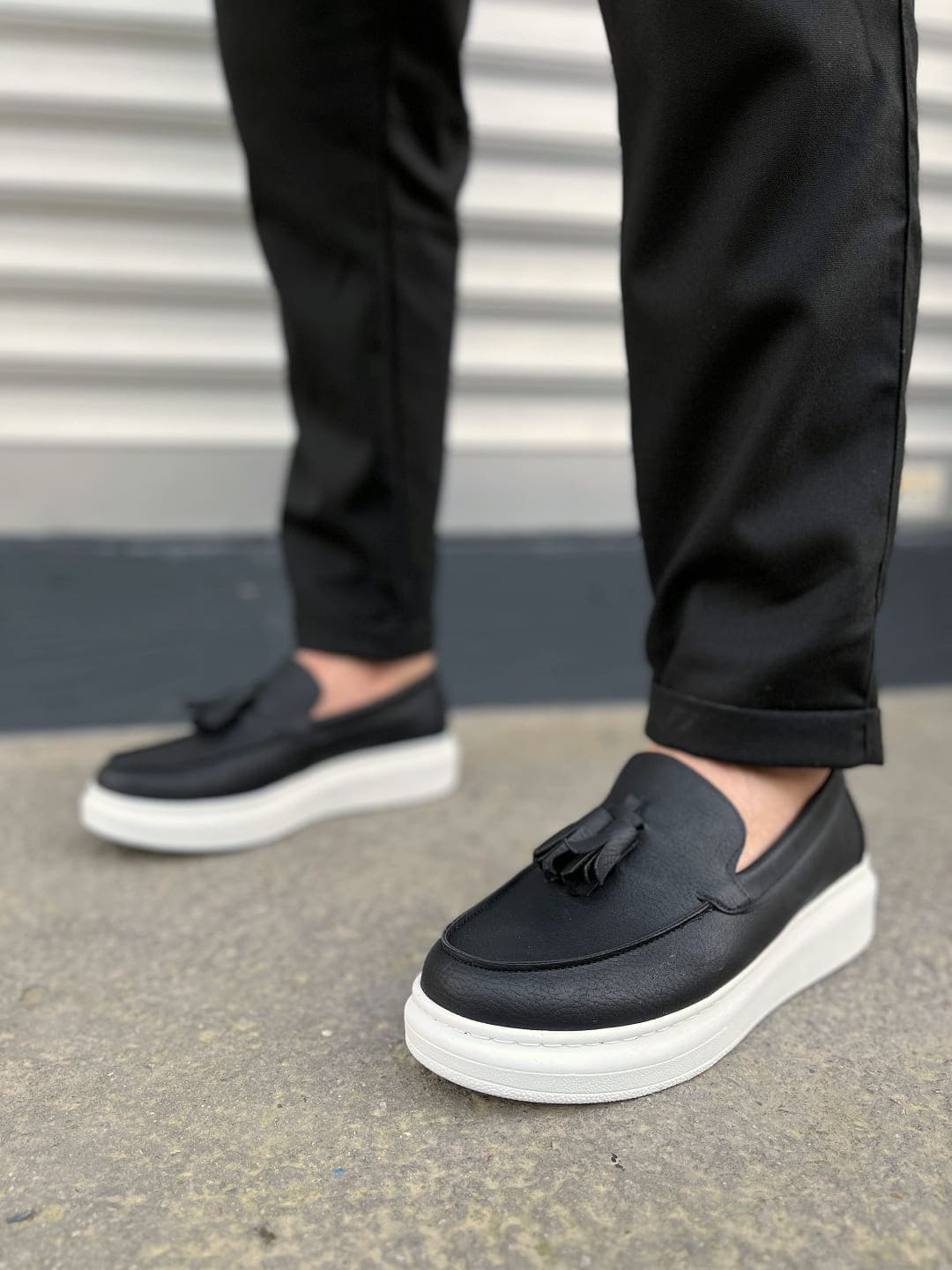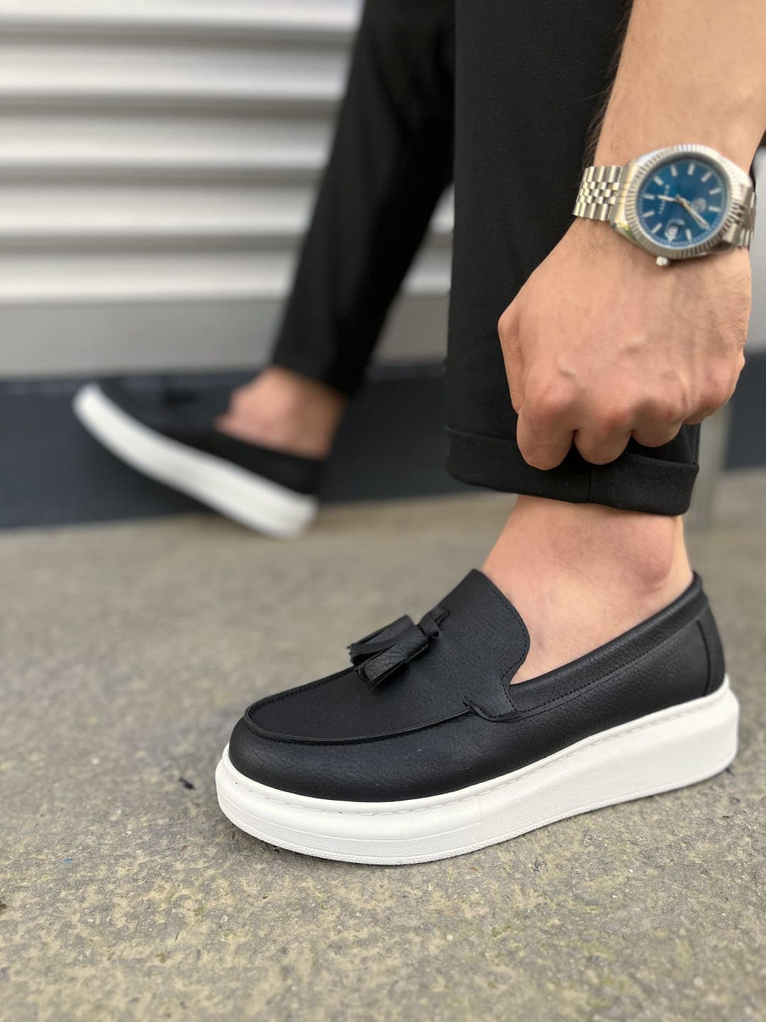 JY154 Blaze Bağcıksız Püsküllü Cilt Erkek Günlük Spor Klasik Ayakkabı CBT – Siyah