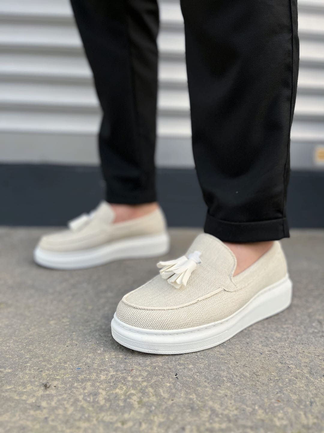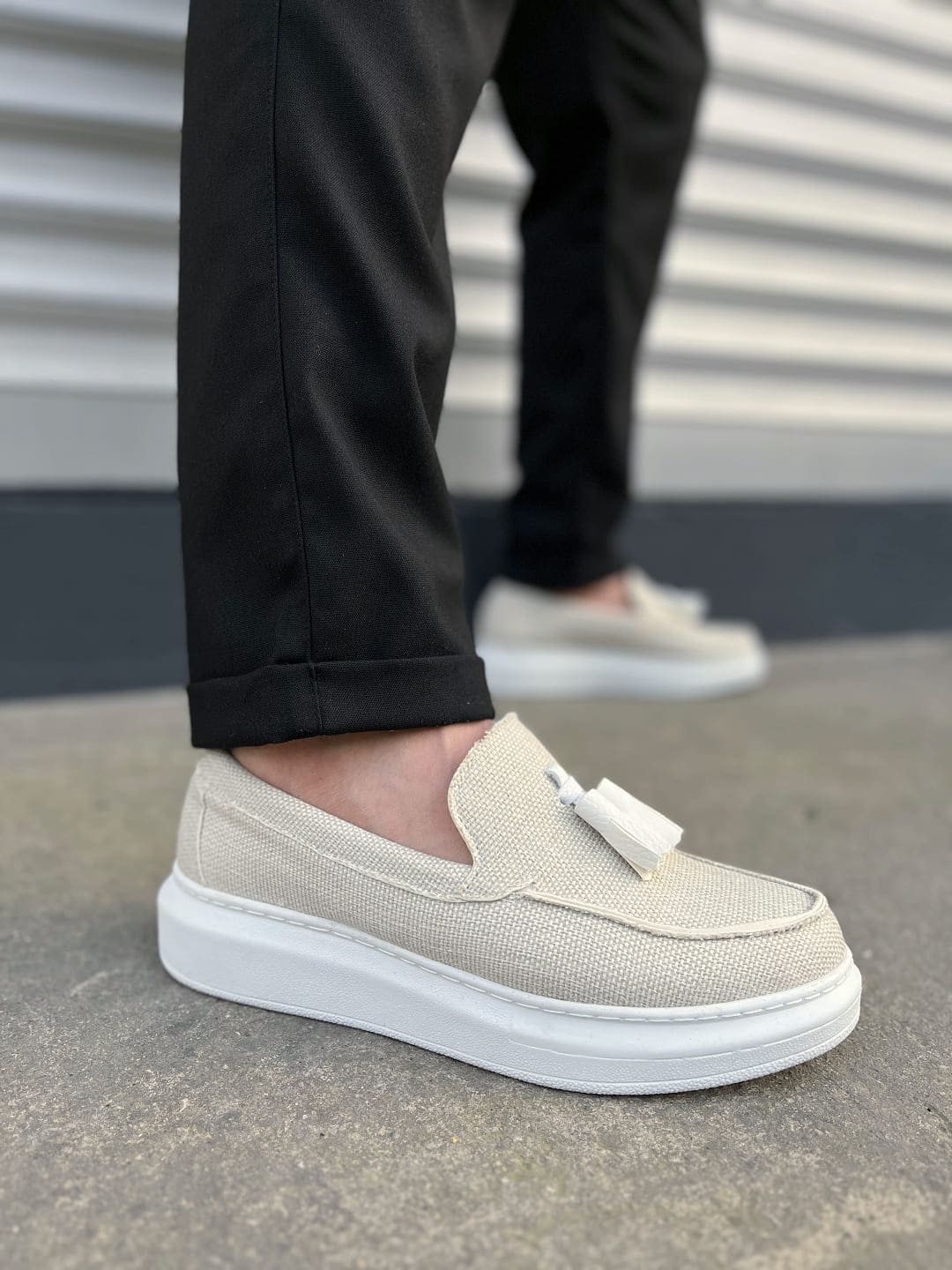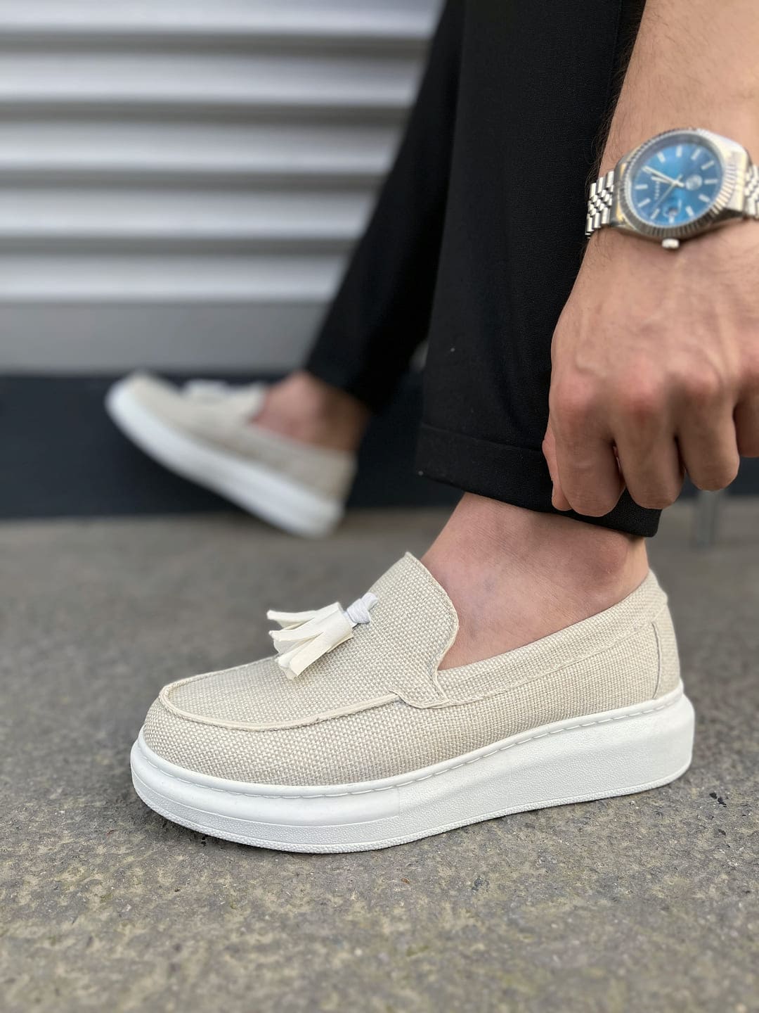 JY154 Blaze Bağcıksız Püsküllü Keten Erkek Günlük Spor Klasik Ayakkabı KBT – Beyaz